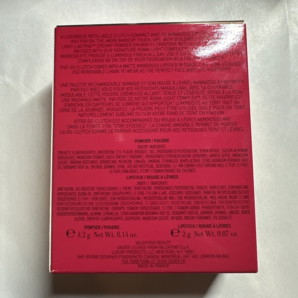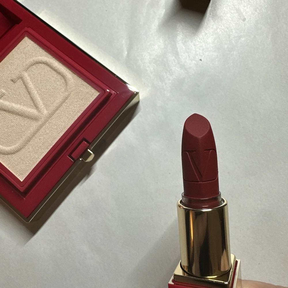 This Valentino clutch and lipstick set is absolutely stunning! The powder shade is perfect for fair skin, and the lipstick adds a glamorous pop of color. The chain detail gives it a chic, high-end feel—love how versatile and elegant it is. A must-have for any makeup lover!