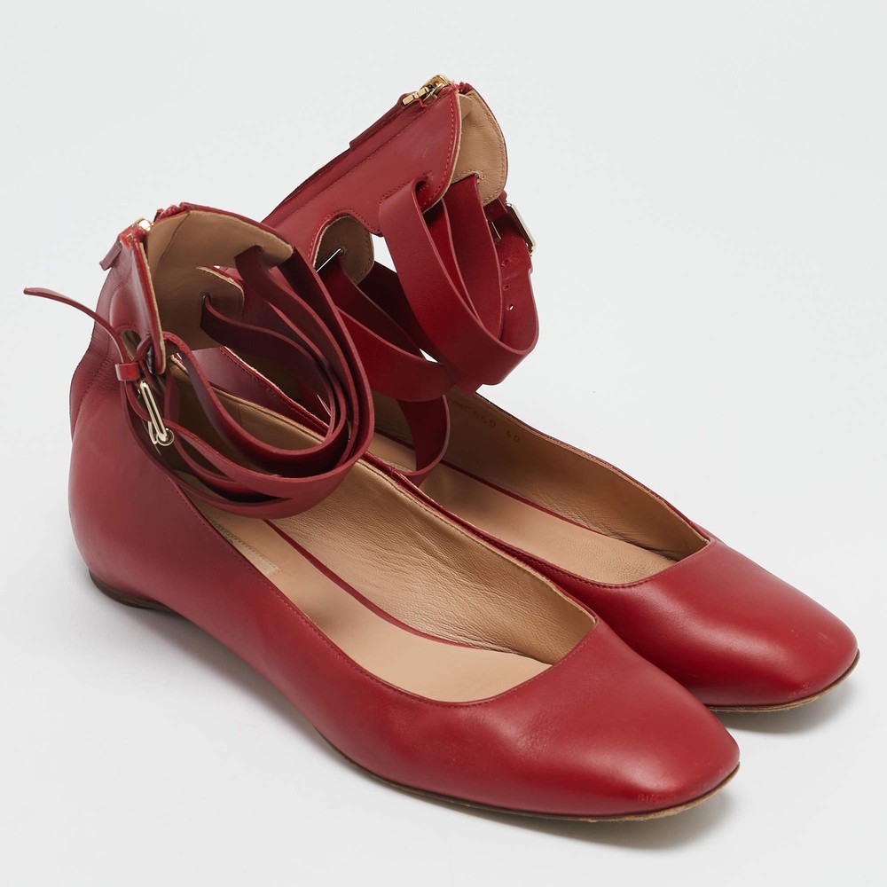 Our eBay Store About Us Contact Us Add to Favorite Sellers Valentino Red Leather Ankle Strap Ballet Flats Size 40 Fierce and feminine, these red leather ballet flats from Valentino feature a sleek silhouette with bold ankle straps. Minimalist in shape but rich in color and attitude, they offer a fiery finish to both casual denim and flowing midi dresses. Product Details Brand Valentino Color Red Includes The Luxury Closet Packaging Outsole Length 27 cm Outsole Width 8 cm Size 40 Certified by The Luxury Closet This item has gone through a detailed authentication process overseen by our experts. We offer a lifetime guarantee of authenticity on all our items. How We Check The in-house team of experts at The Luxury Closet is highly trained to verify the authenticity and the condition of the luxury products. They ensure that only 100% authentic items are put on sale.The evaluation process is unique with its own mix of assessment criteria and differs according to the category. Each item is evaluated based on the following combination of hallmarks, hardware, stitching, symmetry, material, craftsmanship, stamping, codes, hologram stickers, and packaging. Our authenticators also check if the items have been modified or amended (e.g., aftermarket diamonds, replaced batteries, repaired bags, etc.) International Buyers Import duties, taxes and charges are not included in the item price. These charges are the buyers responsibility. Please check with your country’s customs office to determine what these additional cost will be prior to buying.