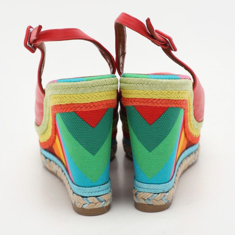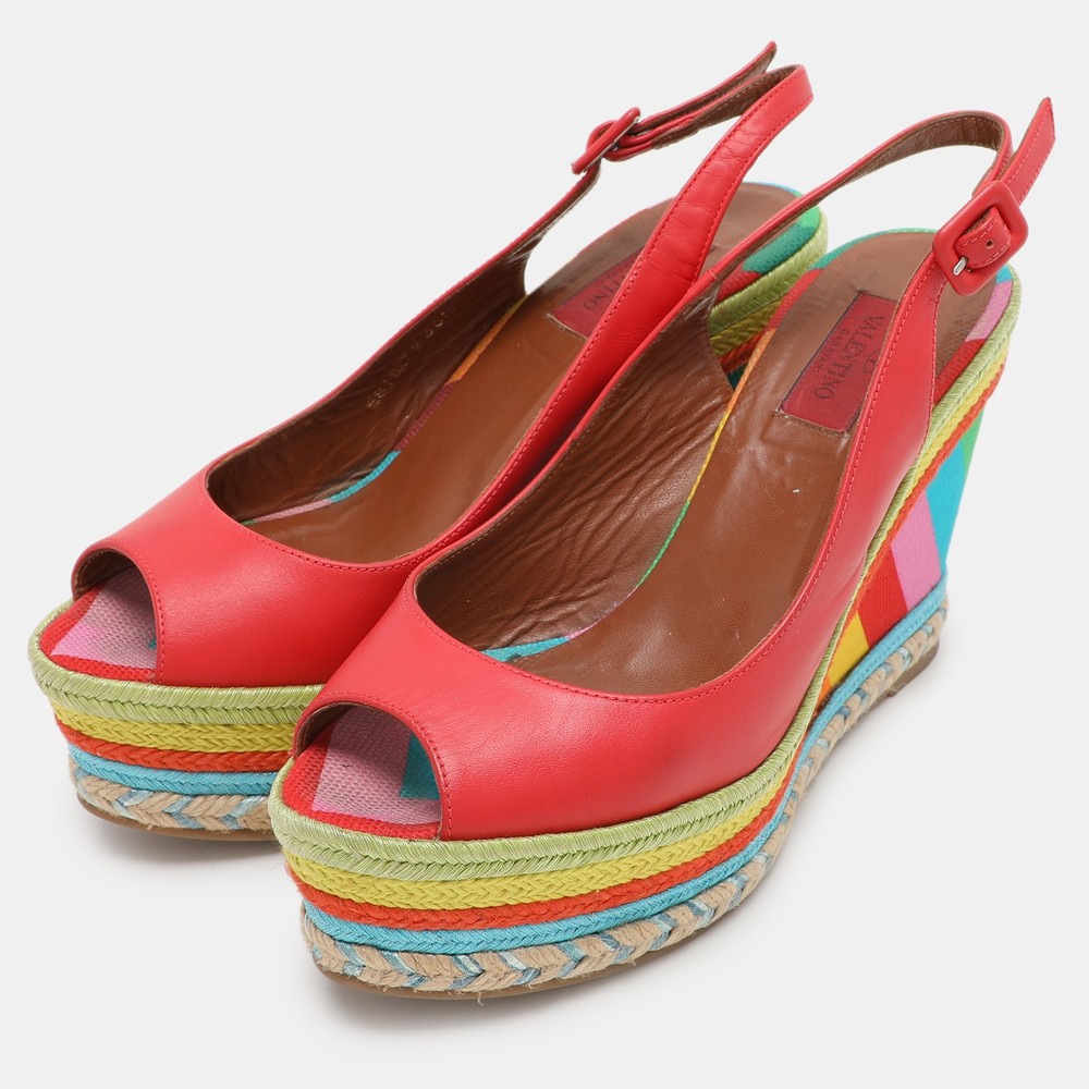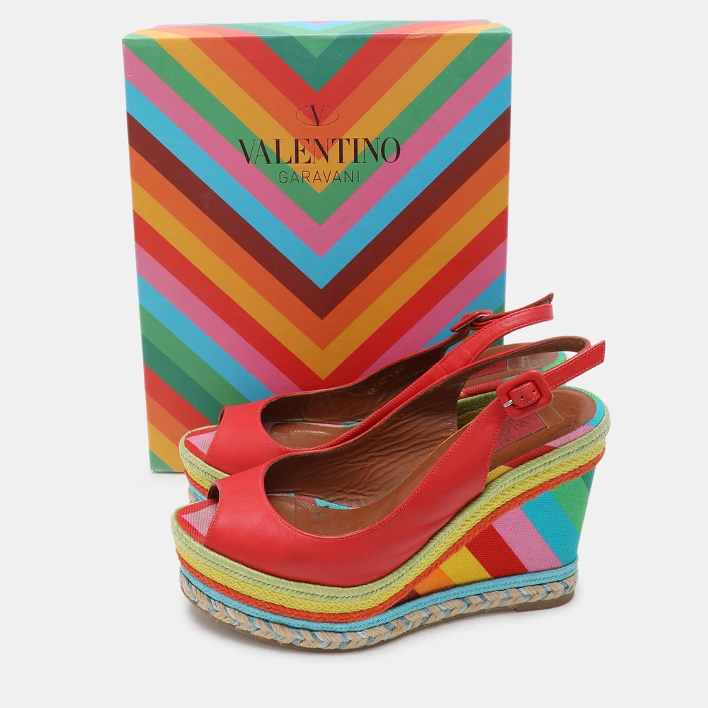 Valentino red leather peep toe slingback rainbow wedge sandals size 38.5