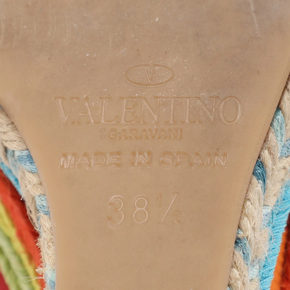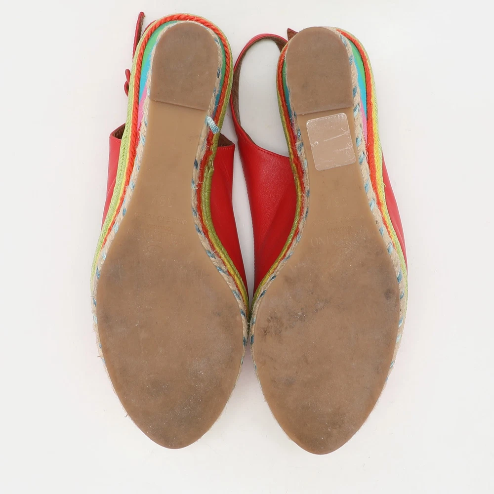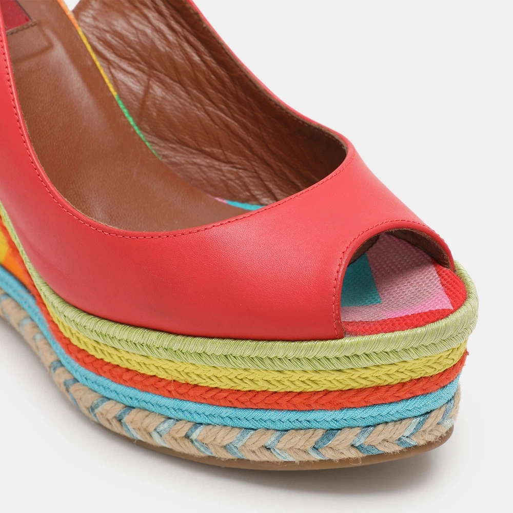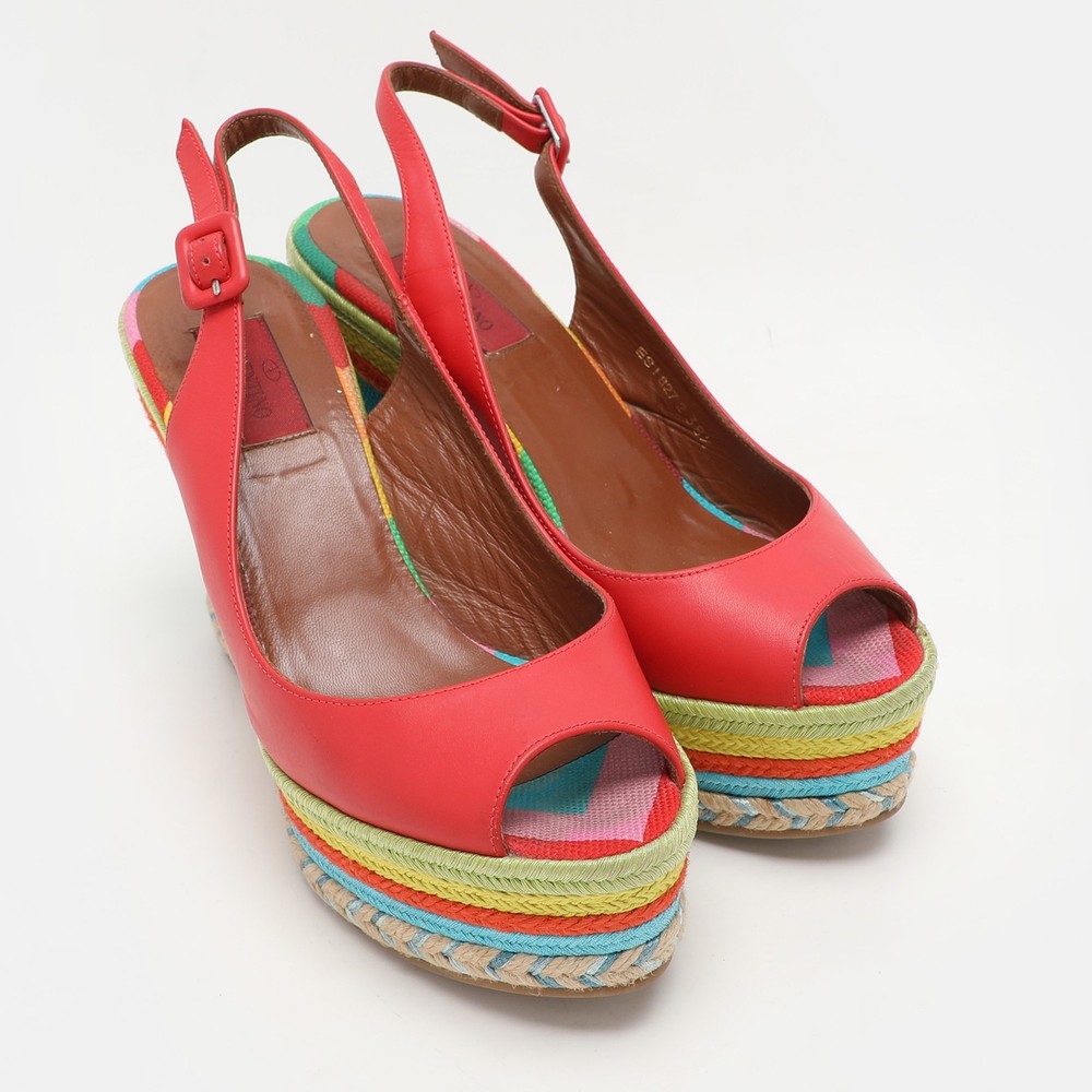 Valentino red leather peep toe slingback rainbow wedge sandals size 38.5