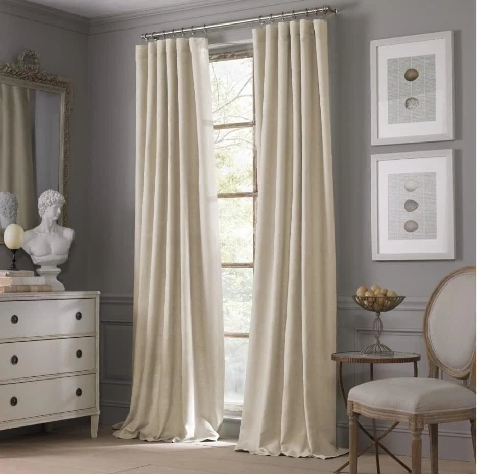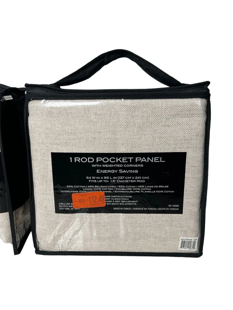 Experience ultimate luxury with the Valeron® Estate Cotton Linen Ultimate Luxury Window Rod Pocket Panel. This modern style panel is made of 52% Turkish Cotton and 48% Belgian Linen, providing a durable and long-lasting fabric. The panel is designed with a rod pocket for easy wall mounting and comes in a beautiful sand color that will complement any room. Featuring room darkening transparency, the panel is perfect for privacy and noise reducing properties. The interlined panel is lined with a heavy fabric that provides insulation and warmth. Dry clean only for optimal care.