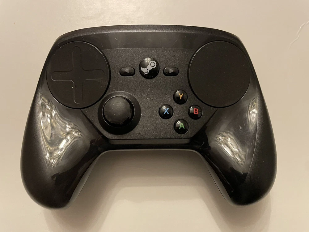 The Steam Controller model 1001 is a black PC controller designed for use with Steam games. This listing specifically states that it does not include a dongle for wireless connectivity, so it likely requires a wired connection to the PC for use. The controller is compatible with PC gaming and is a product from the Steam brand, offering a unique gaming experience for those looking to play on the Steam platform. Despite not being personalized, it can still provide a convenient and reliable way to control games on a computer. There is some damage to the thumb stick rubber, check photos.