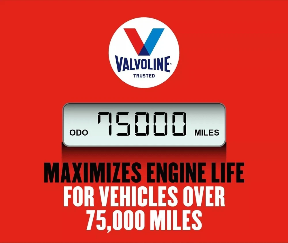 Valvoline High Mileage MaxLife 10W-30 Synthetic Blend Motor Oil 5 QT Maybe you’re spending extra money to top off oil between changes. Or maybe you’re noticing oil leaks in your driveway. Either way, it’s an obvious sign your vehicle needs a high mileage motor oil. If left untreated, the issues could eventually lead to engine breakdown. Other problems with aging engines may be less obvious but can still be just as harmful. After 75,000 miles, your vehicle deserves Valvoline High Mileage Motor Oil with premium seal conditioners seal conditioners to rejuvenate aging seals and prevent oil leaks. Our synthetic blend formula and superior-quality additives protect against engine deposits, wear, friction and extreme heat, the four leading causes of engine failure. Plus, added detergents reduce sludge, corrosion and deposits. Toyota, Ford, Chevy, Dodge, Honda, Hyundai – cars, SUVs, trucks – no matter the make or model, Valvoline High Mileage with MaxLife Technology helps curb contaminants to keep high-mileage engines from burning and consuming oil. Valvoline Synthetic Blend High Mileage with MaxLife Technology, America’s first motor oil to specifically address the needs of higher mileage vehicles. MAXLIFE TECHNOLOGY PREVENTS engine breakdown with 40% better wear protection than the industry standard REFRESH AGING SEALS AND PREVENT LEAKS with seal conditioners REDUCE SLUDGE, DEPOSITS, CORROSION, AND RUST with added detergents – keep motors clean inside ENHANCED FRICTION PERFORMANCE HELPS MAXIMIZE POWER with advanced friction-fighting agents MEETS OR EXCEEDS ALL REQUIREMENTS of ILSAC GF-6A, API SP, API SN with SN PLUS, API SN