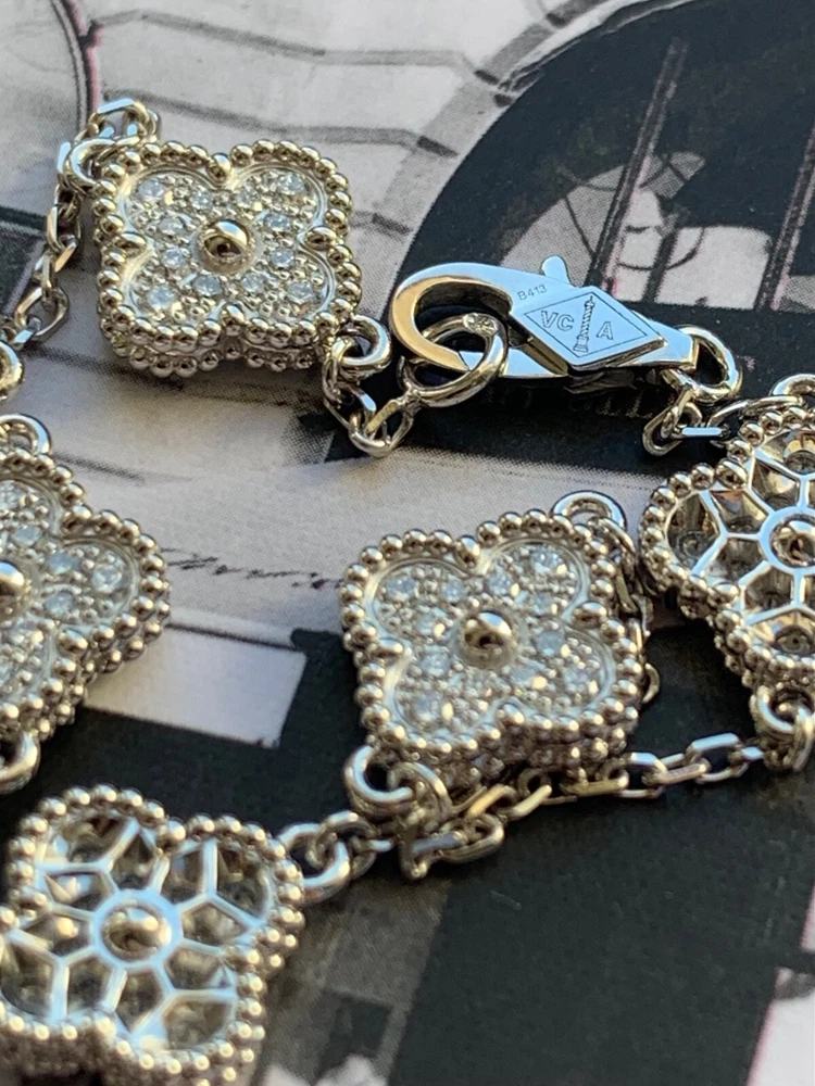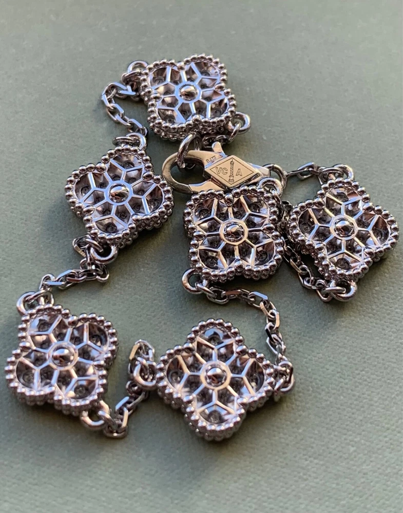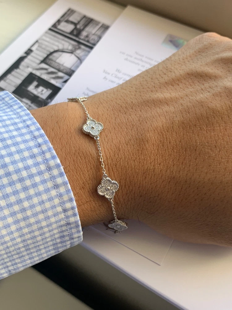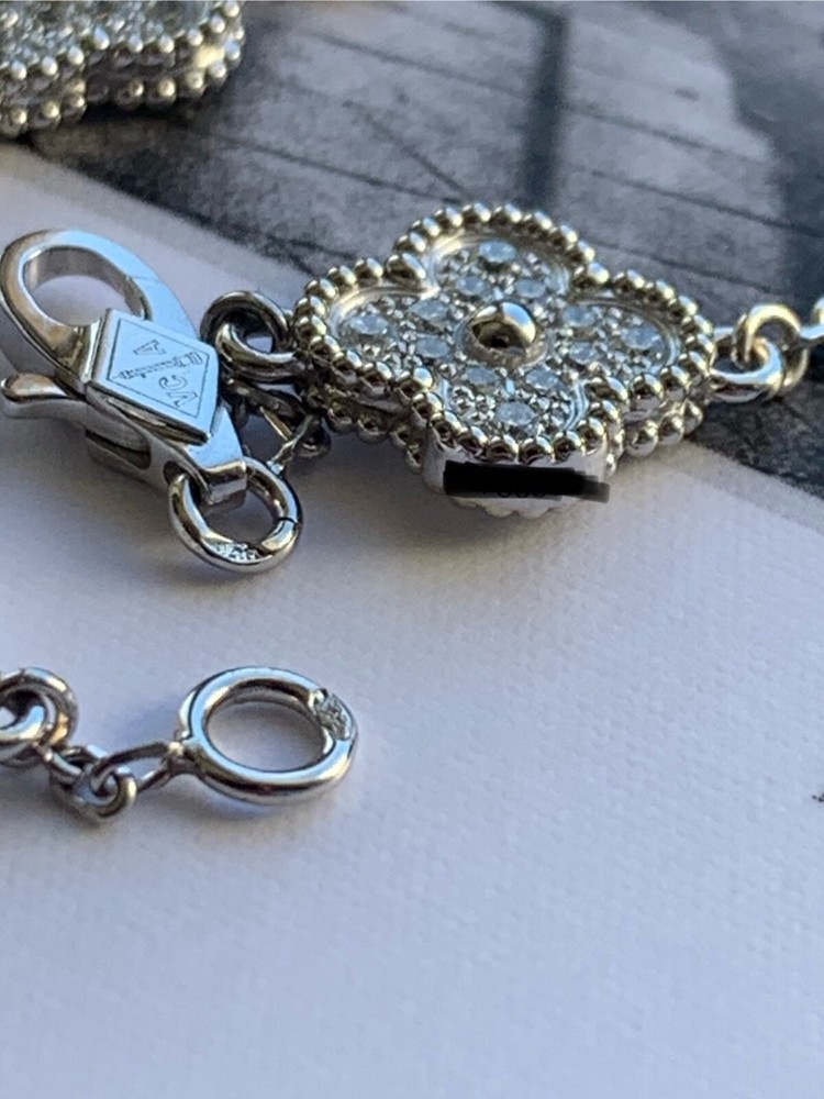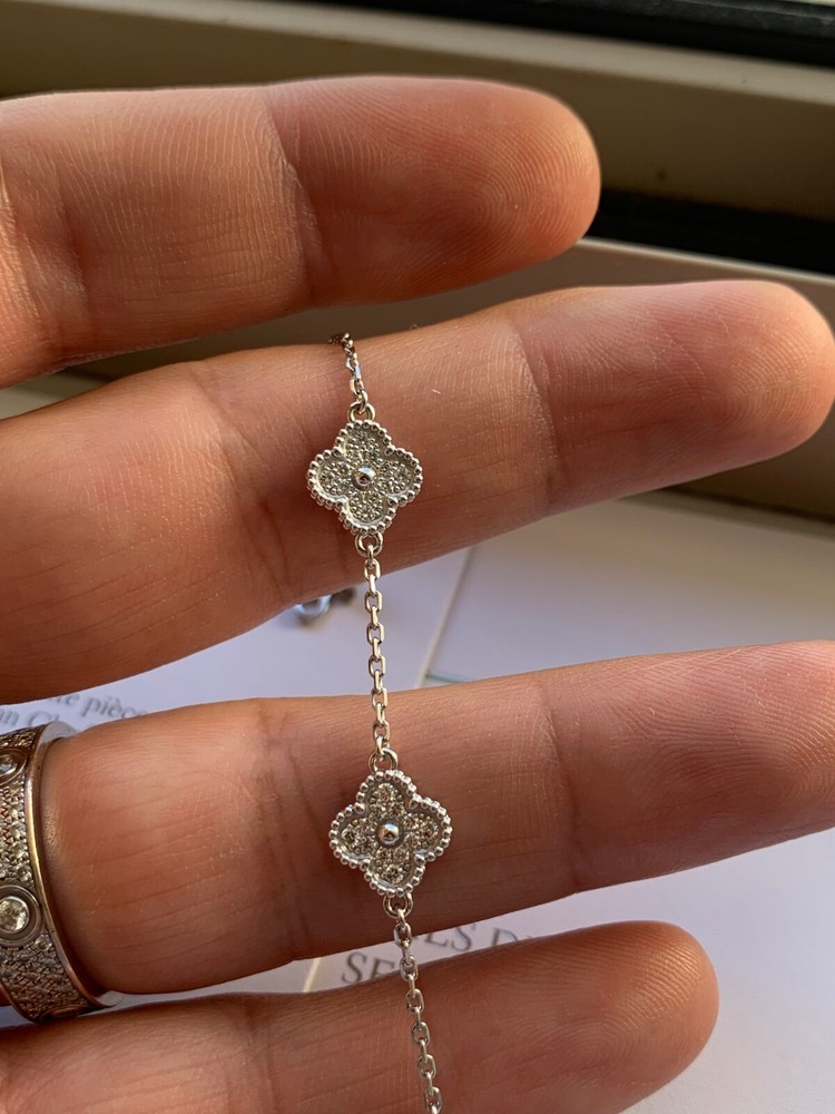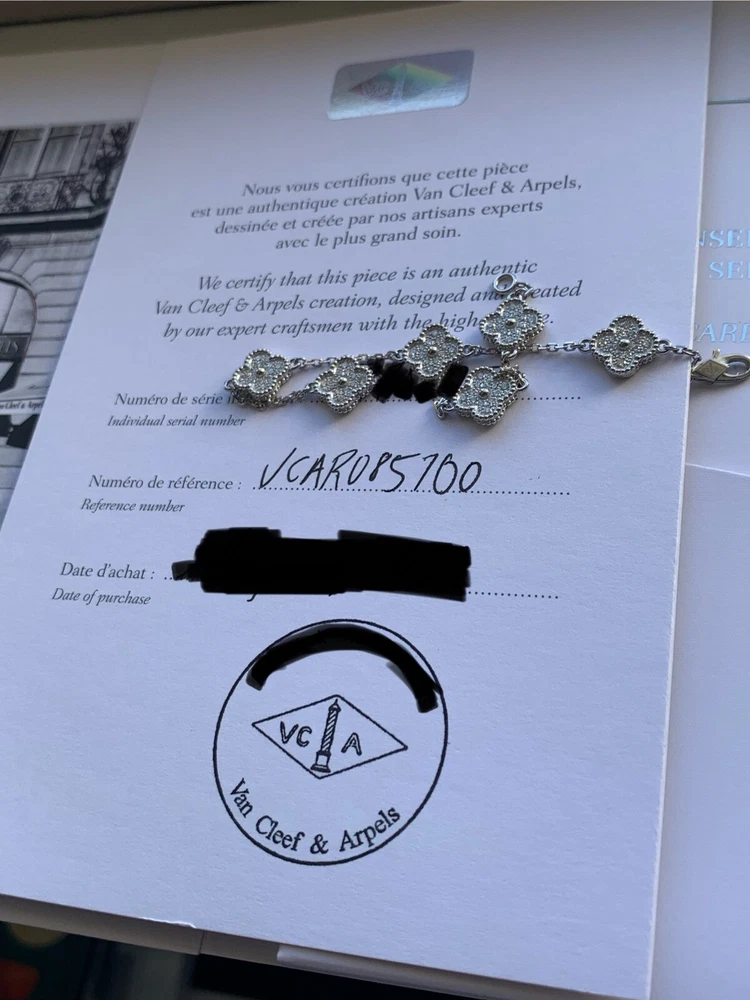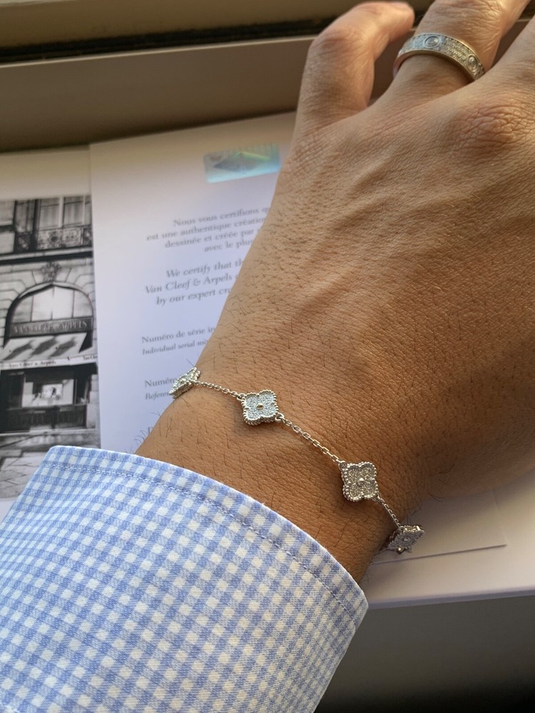 Absolutely stunning! The Van Cleef & Arpels Alhambra bracelet is pure elegance—sparkling diamonds set in delicate white gold motifs. The craftsmanship is impeccable, and it looks even more beautiful in person. Comes with the certificate, so you know it’s authentic. Perfect for adding a touch of luxury to any outfit. Love it!