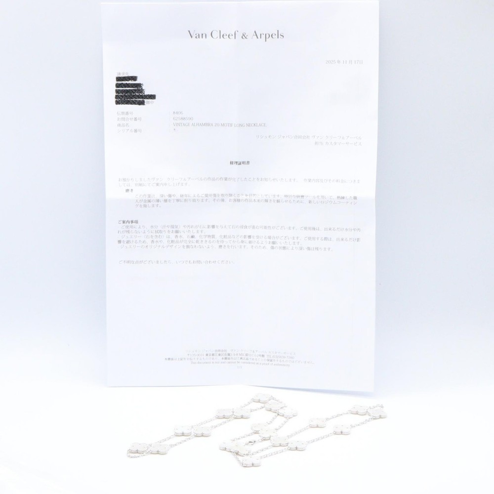 Van Cleef & Arpels Vintage Alhambra 20 Motif Necklace Mother of Pearl Gold Women Description / Specification Brand Name VAN CLEEF & ARPELS Item Name Van Cleef & Arpels Vintage Alhambra 20 Motif Necklace Mother of Pearl Gold Women Color Silver‐ish colors Material K18WG(White Gold) × Mother of pearl Metal Purity K18WG(White Gold) × Mother of pearl Size Neck rotation:84cm(33.1") Motif W:15mm x H:15mm(0.6" x 0.6") Weight 47.8g Accessories Repair certificate Accessories not stated are not included. (If there is no mention of a box or dust bag, they are not included either.) Instore Code 2101219528021 Up Date 2026/02/14 Condition Pre-owned used Necklace by VAN CLEEF & ARPELS in good condition . Outside Condition There is some usability, scratches, rubbing, and stain. There are some signs of wear. *This product has been polished, but there may be small scratches that cannot be removed. Thank you for your understanding. Inside Condition There is some usability, scratches, rubbing, and stain. Please take a look at the descriptions and the pictures above to check the condition of the item before the purchase. Rank Pristine New, Not used. Excellent Excellent, Allmost as good as new. Very Good A slightly used. Good There are a few scratches, stains and looks a little used. Fair + There are some noticeable scratches and stains. Looks used. Fair There are some noticeable scratches and stains. Looks obviously used. Poor + There are many scratches and stains. Looks very used. Poor Looks very used, but still usable. About Authenticity We have a large selection of luxury brand products We guarantee that all of the items we list and sell are authentic. Feel free to contact us if you have any inquiries or concerns. We are approved seller from Tokyo Metropolitan Police License No : 301061906960(Used Item Seller ) In addition, We also are a member of the Association Against Counterfeit Product Distribution (AACD), and we promise to have no bogus under any circumstances. Please read before order Shipment cannot be marked as a 'gift' or with altered price due to the custom declaration laws. Import duties, taxes, or other additional fees will be charged by your local customs. We are not responsible for any customs and taxes applied to your order. All fees imposed during or after shipping are the responsibilities of the customer (tariffs, taxes, etc.). Please inquire the details of import duties or taxes at the customs office in your country directly before making an order. Payment & Shipping Payment We only accept payments via Managed Payments. Shipping All items will be shipped from Japan. We can only make shipment to the registered address with your ebay account. All orders are processed within 3-5 business days. Orders are not shipped on weekends or holidays. 1.Shipments will be made by DHL. 2.For orders which are not able to be shipped by DHL, they will be shipped by Fedex or UPS. 3.Orders for China will be shipped via EMS of the Japan Post. 4.We currently suspend shipping services to APO/FPO, Brazil, Chile, Indonesia, Mexico, Peru, Philippines, Russian Federation, and Ukraine. Delivery time 1.Delivery usually takes approximately 3-10 business days 2. Shipments might be delayed due to the following reasons: a)Bad weathers b)Public holidays c)Delay at the customs office Returns/Cancellation Policies As we selling our items on other websites and in our retail stores in Japan at the same time, if the item was sold out before your purchase, your order will be cancelled with a full refund Customers are allowed to return the item within 30 days from the delivery or pick up date for a full refund. Items without the security tag are not allowed to be returned. All fees imposed during the return shipping are the responsibilities of the customer Please contact us before starting a return Please provide us the tracking number once return shipment is made. If the mistake caused by human error is occer, please forgive me for cancelling by us. See more Policies & Description