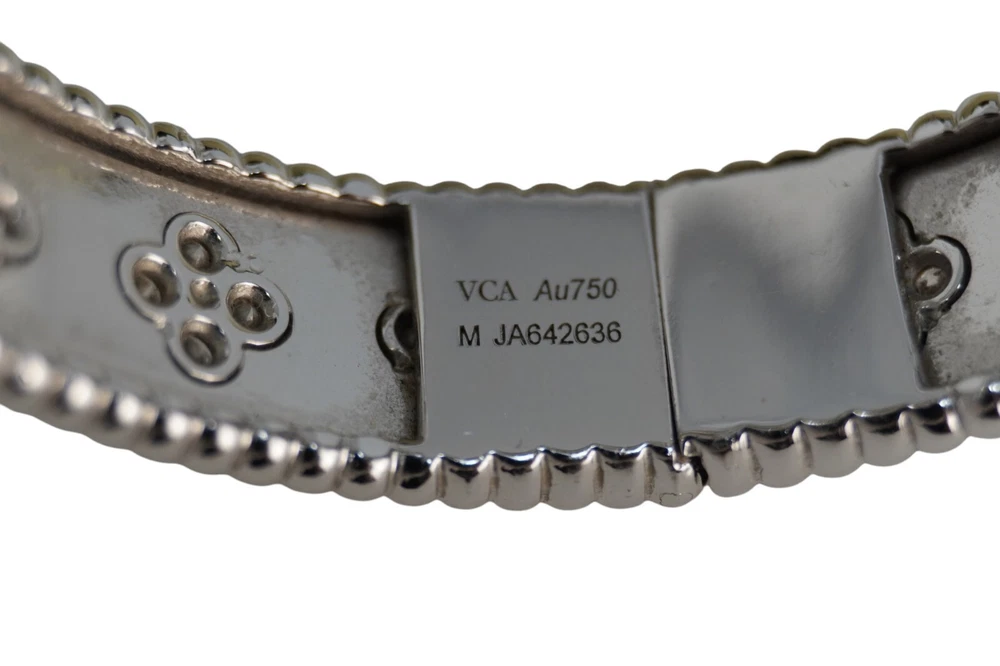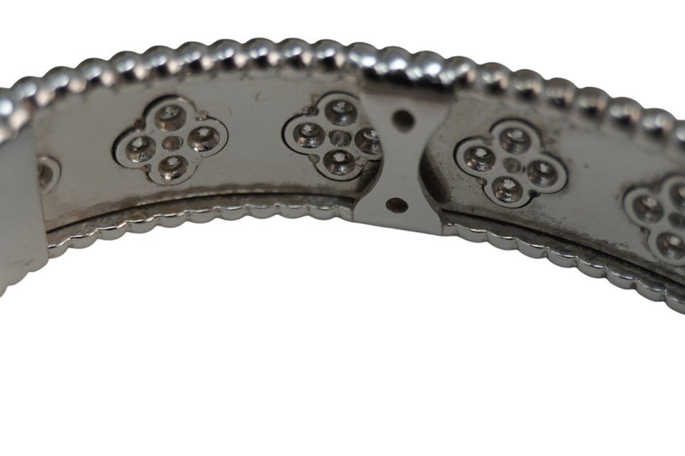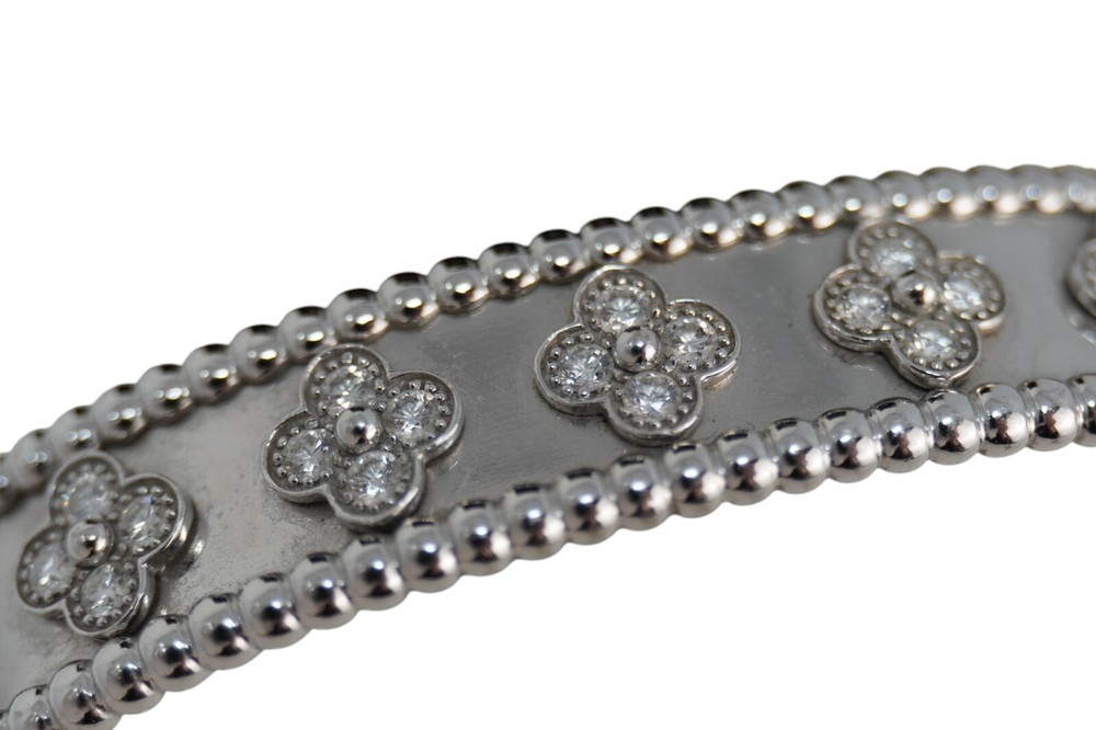 Discover the timeless elegance of the Van Cleef & Arpels Vintage Alhambra Bracelet in 18K White Gold with Diamonds. Featuring the iconic Alhambra four-leaf clover motifs, each adorned with sparkling pavé diamonds, this exquisite bracelet showcases Van Cleef’s signature craftsmanship and timeless design. A true statement of luxury, perfect for any fine jewelry collection.