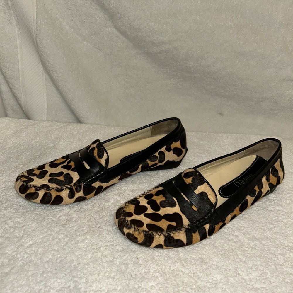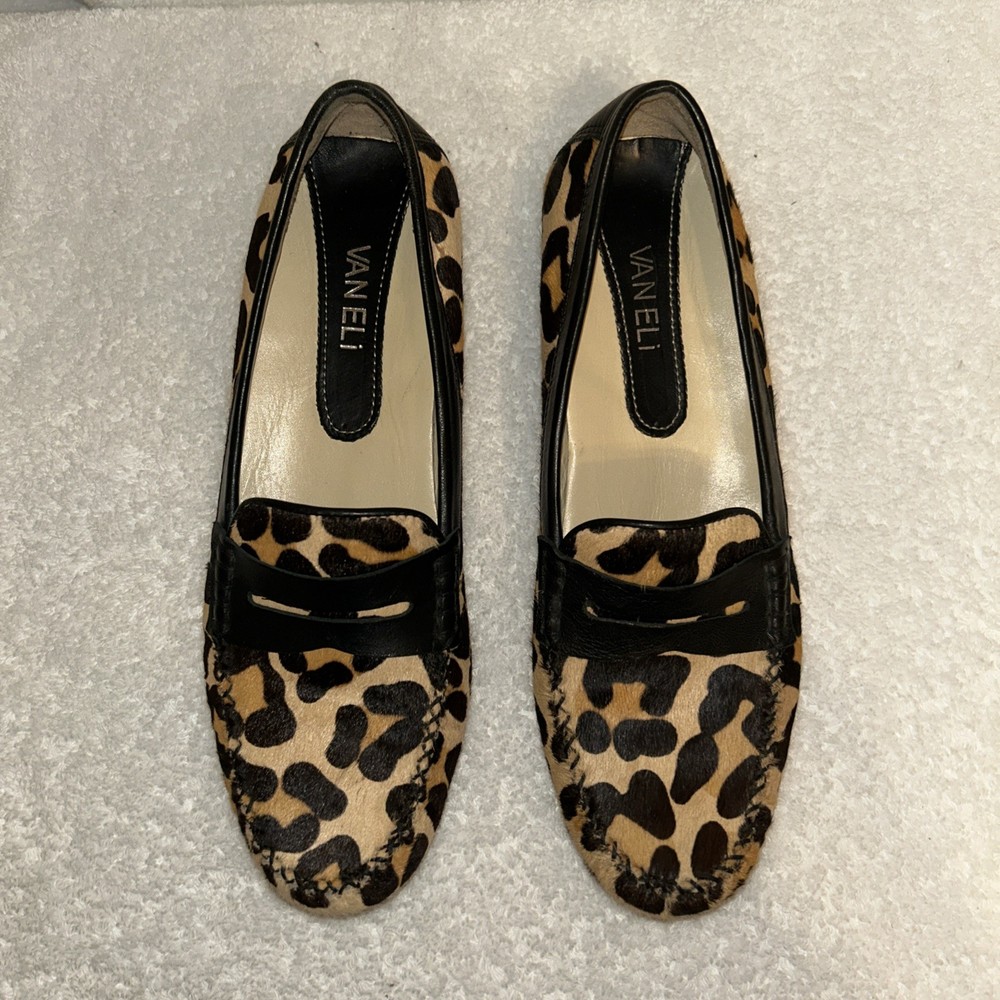 Van Eli Women’s Penny Loafer Driving Shoe Cheetah Print Calf Hair 8A Preowned Good Condition (see photos) note size : (8A). (000A3)