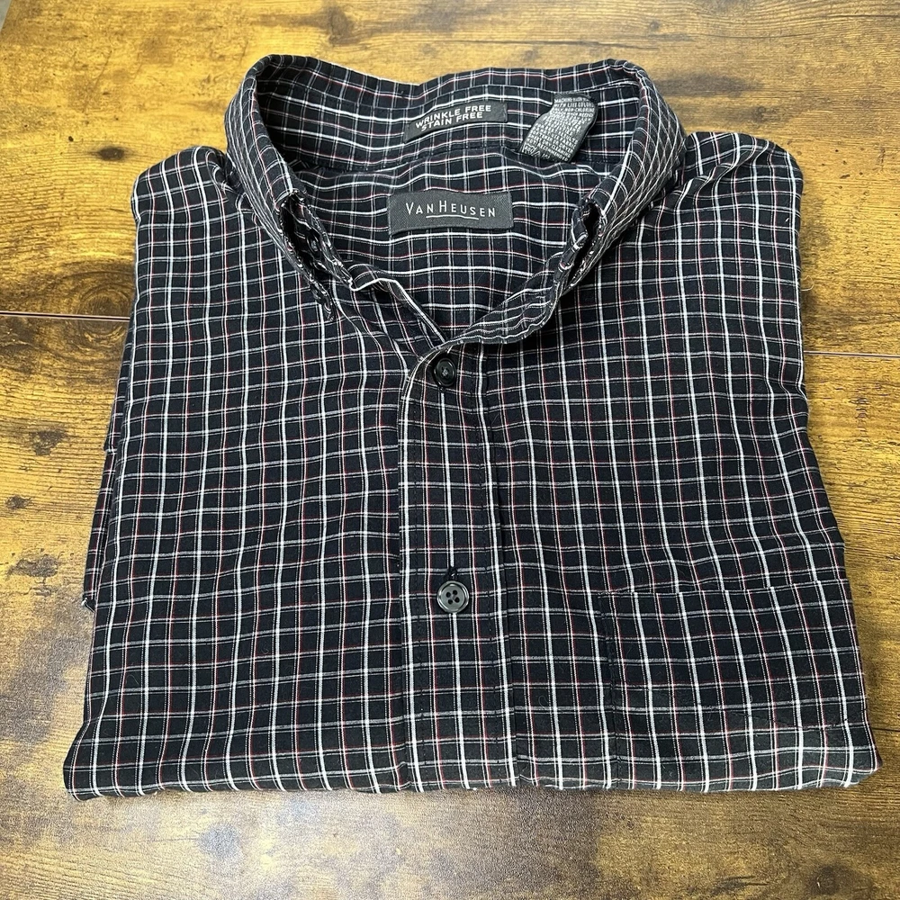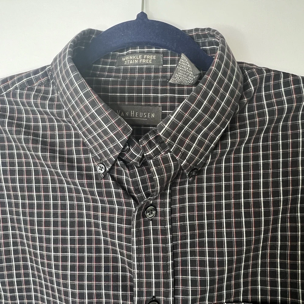 Van Heusen Black and White Checkered Button Up Shirt Mens Medium Get it before it’s gone! “Because who doesn’t need another black-and-white masterpiece in their wardrobe?” Keep it sharp and stylish with this Van Heusen black and white checkered button-up shirt. Designed for versatility and comfort, this shirt is perfect for both casual outings and semi-formal occasions. The classic checkered pattern and lightweight fabric make it easy to dress up or down, while the button-up style ensures a polished look. A wardrobe essential for anyone who appreciates timeless fashion and effortless style. Disclaimer: This pre-loved shirt is in good condition, with minor signs of wear that do not detract from its overall appeal.