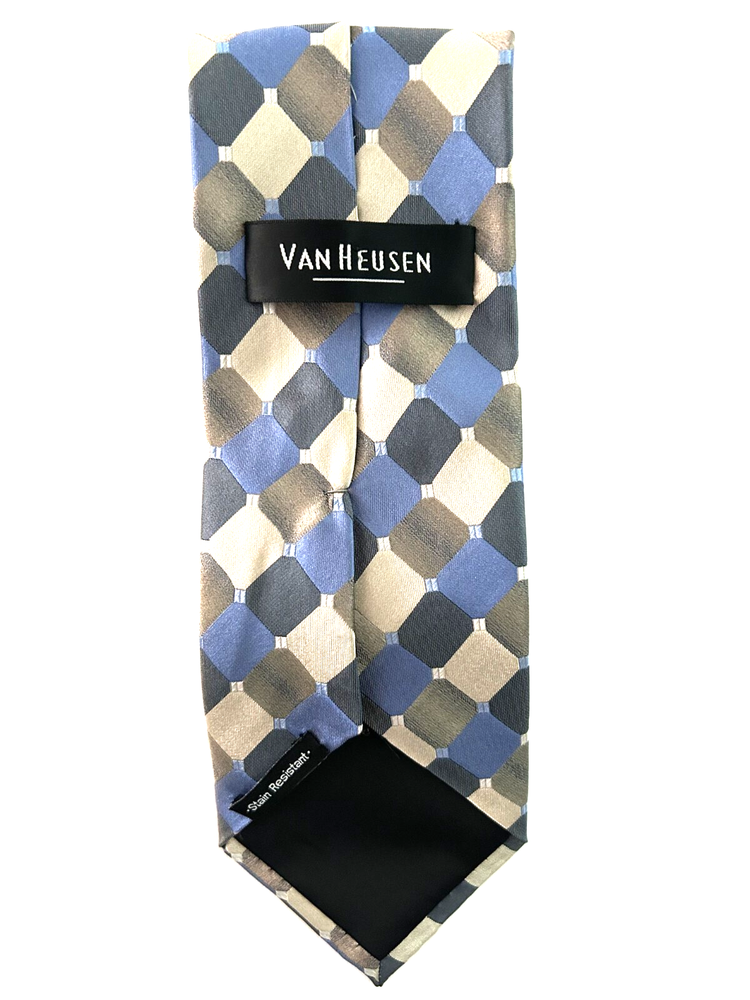 The Van Heusen Blue Gold 100% Silk Handmade Tie is a luxurious and stylish accessory for men. Featuring a geometric pattern in vibrant multicolor hues, this tie is crafted from a blend of high-quality polyester and silk. The classic length of 57"-60" and adjustable clip attachment make it a versatile and convenient addition to any man's wardrobe. With the prestigious Van Heusen brand and the craftsmanship of being handmade, this necktie exudes sophistication and class.