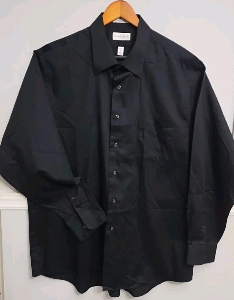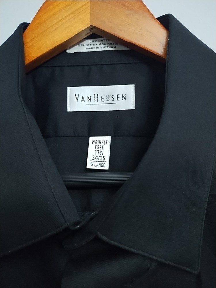 VAN HEUSEN Wrinkle free Men's black Size XL 17 1/2 - 43/35 Lux sateen 55% cotton, 45% polyester In excellent condition Please see photos for measurements and more details Any questions please let me know. B#10