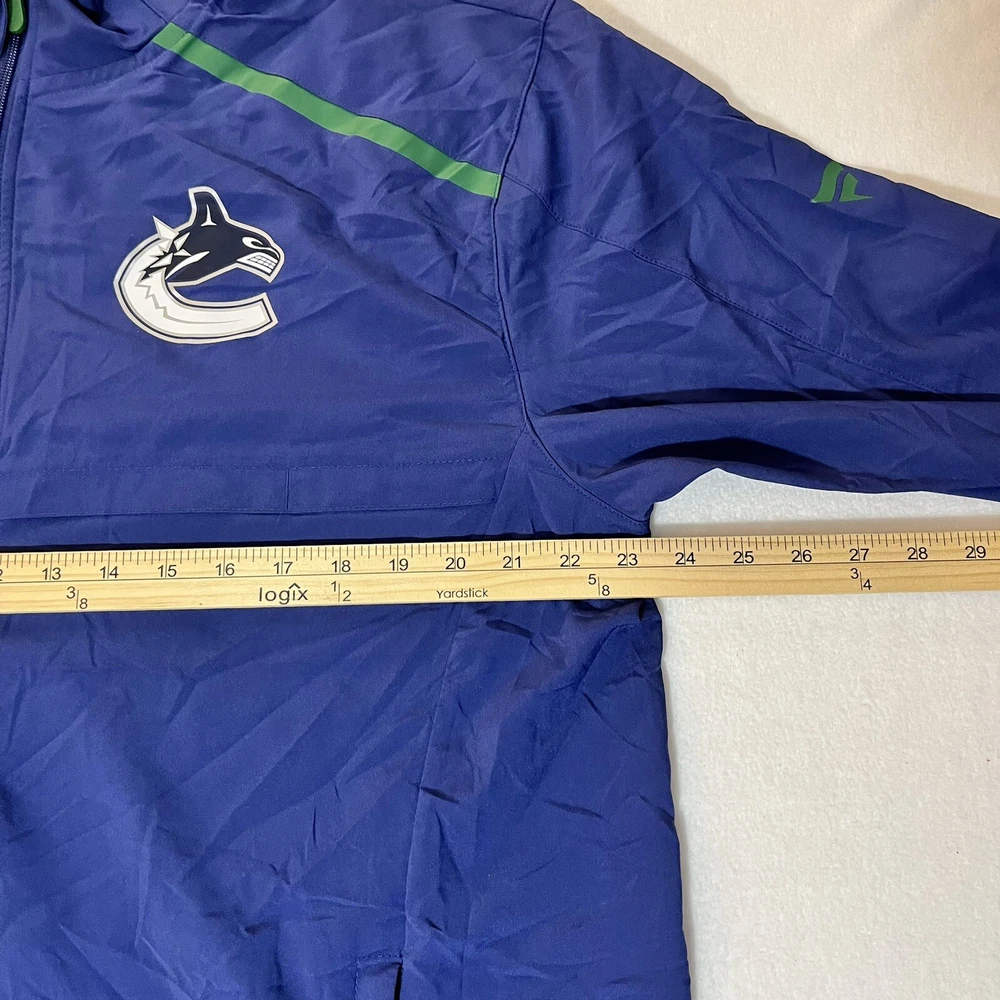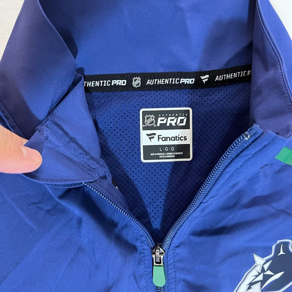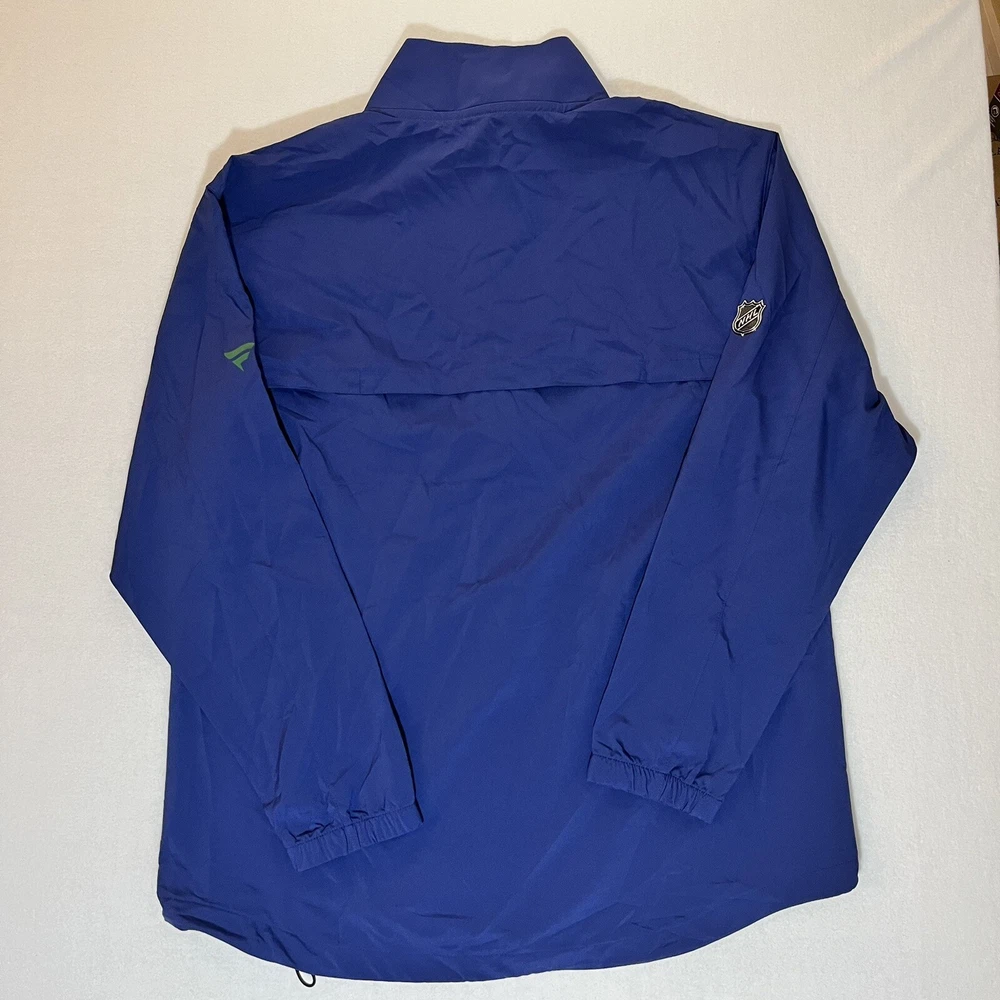 General Notes Color(s) may slightly differ due to monitor settings and lighting. Please check out our other listings as you may be surprised at what you find. Please read the item description and view all the photos. The photos will provide a good representation of the item (see the first note above about colors). Any flaw(s) will have a dedicated photos to show the flaw(s) You may want to compare the measurements of this item to something you already have that fits. If you experience a problem with your item, please contact us so that we can attempt to fix the issue promptly. Fanatics Vancouver Canucks Full Zip Jacket Blue Men’s Large NWOT Company: Fanatics (Authentic Pro Series) Condition: New Without Tags Color: Blue Style: Regular Fit Sleeves: Long Sleeve Collar: Full Zip w/soft stand collar Size: XXL (Extra Extra Large) Sleeve Length: 34.5” (from nape of neck in line with spine) Shirt Length: 30” (from base of collar to bottom of shirt) Shirt Width: 23.5” (from pit to pit) Wash Instructions: Machine Wash Lightweight, Full-Zip Jacket in Blue Left Chest graphic (Team Logo) Metallic NHL Shield on right sleeve Fanatics hit on left sleeve Zip Front Pockets See photos for measurements and shirt details and appearance Measurements are approximate (see photos) Item Description from the Seller Add this lightweight, full-zip jacket to your moderate cold gear collection and wear it on mild days or layer with it on cold days. This piece features zip front pocket, back vent and graphics on left chest, and both sleeves. This one is officially licensed and New Without Tags (pocket zipper pulls still wrapped in paper). Buy It Now and save! Inv. #0375