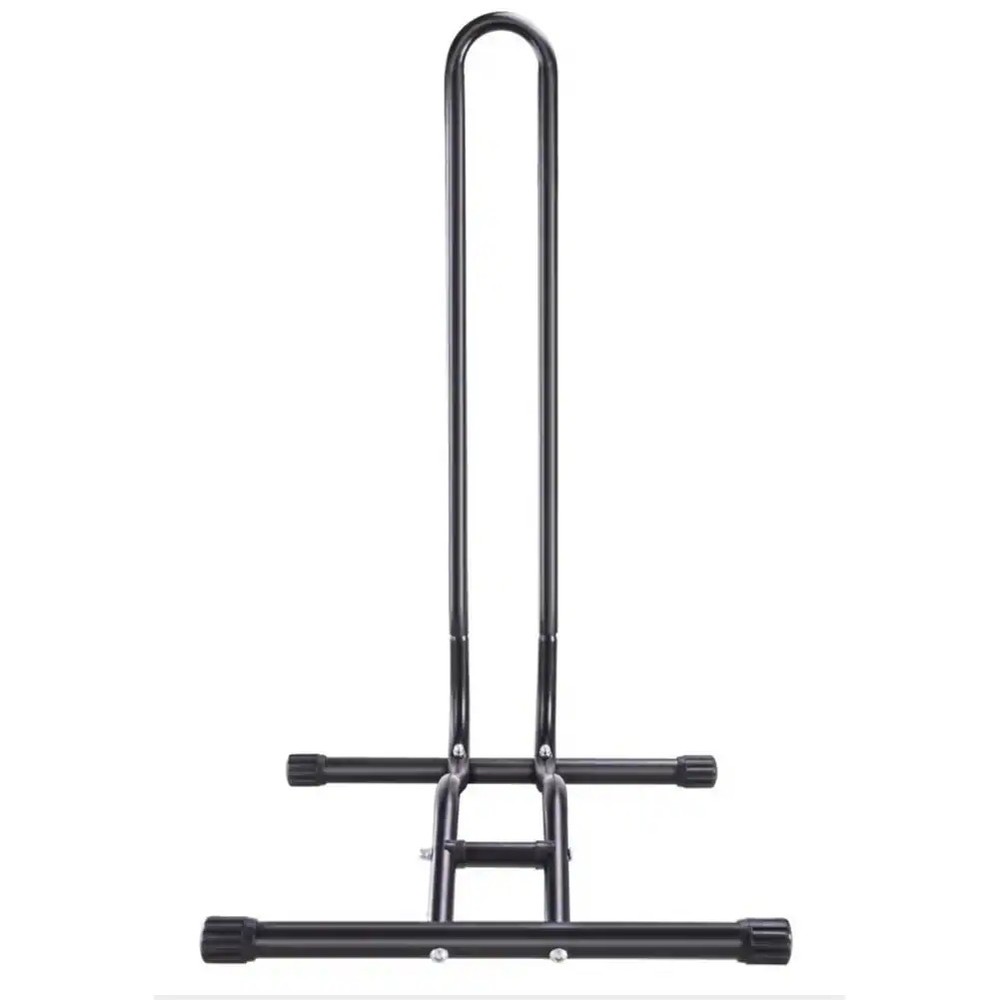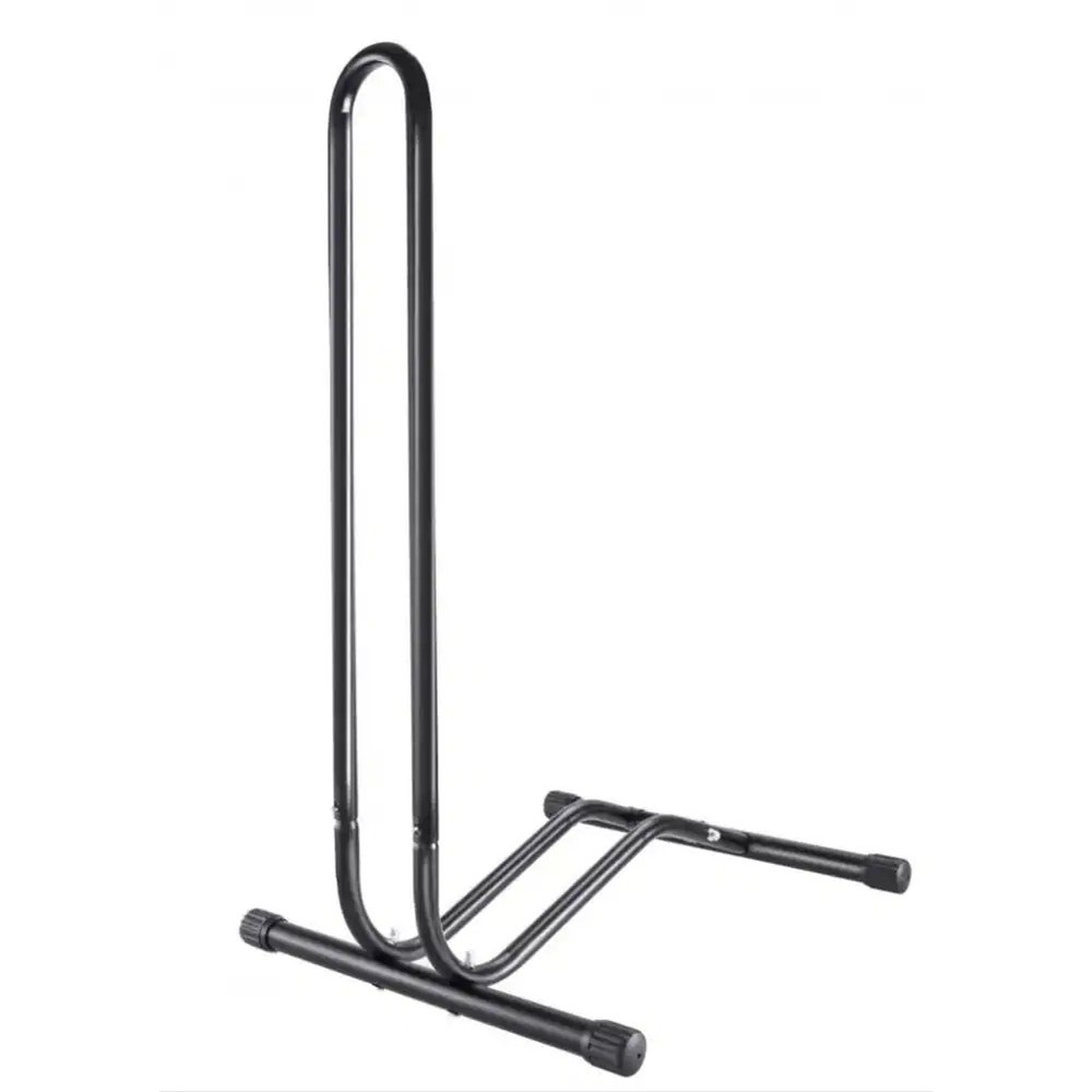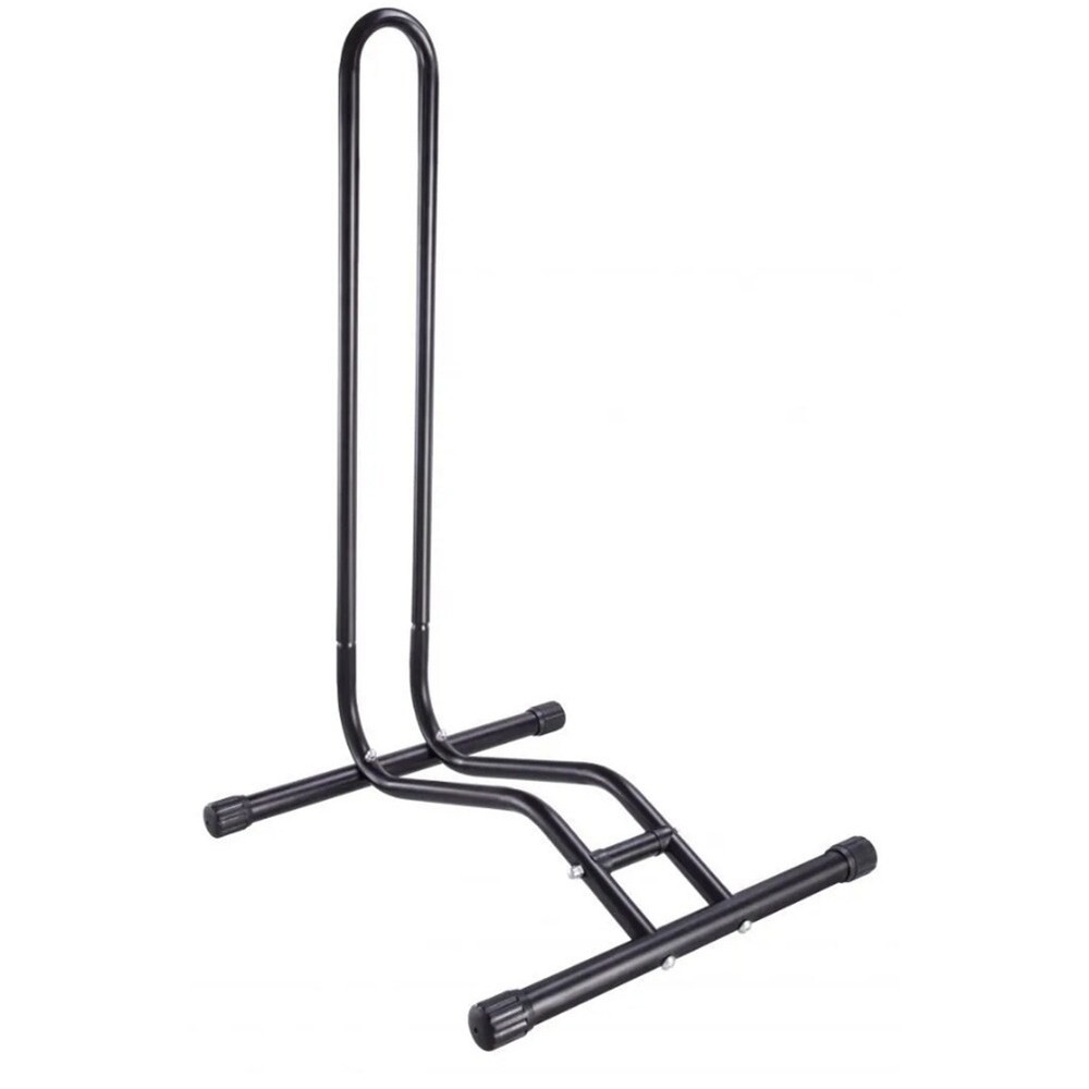 This freestanding floor bicycle stand is the most versatile solution for your bike storage needs. Constructed of tubular steel, this bike stand is durable and is designed to support bikes with up to 2.5" wide tires. Perfect for storing in the garage, bike shop, at the race, or anywhere else. Supports bicycles with 24-29" tires including kid's bikes. Simply park the bike with either front-wheel or rear-wheel first and the steel support will keep your bike standing vertically. The high-quality all-tubular steel frame is durable and sturdy. Includes anti-slip PVC caps to prevent slipping. Black powder-coated steel surface is suitable for both indoor and outdoor use. Non-slip PVC feet pads prevent your floor from getting scratched and keep the stand level and in place. Assembly required. The Free Shipping Over $49.99* Details Vandue Universal Freestanding Bicycle Parking Stand - Fits Road/Mountain Bikes - Product Description: This freestanding floor bicycle stand is the most versatile solution for your bike storage needs. Constructed of tubular steel, this bike stand is durable and is designed to support bikes with up to 2.5" wide tires. Perfect for storing in the garage, bike shop, at the race, or anywhere else. Supports bicycles with 24-29" tires including kid's bikes. Simply park the bike with either front-wheel or rear-wheel first and the steel support will keep your bike standing vertically. The high-quality all-tubular steel frame is durable and sturdy. Includes anti-slip PVC caps to prevent slipping. Black powder-coated steel surface is suitable for both indoor and outdoor use. Non-slip PVC feet pads prevent your floor from getting scratched and keep the stand level and in place. Assembly required. The bike is not included. 12" x 16.5" x 29.5".