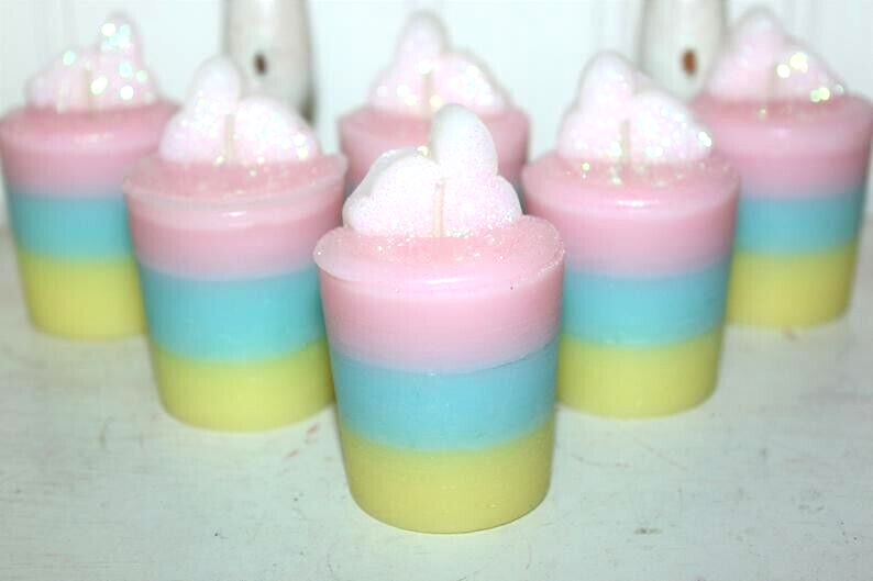 I CAN MAKE THESE ANY SCENT I STOCK SO FEEL FREE TO CONTACT ME FOR A SCENT CHANGE REQUEST **** SHIPPING IS OFTEN CALCULATED HIGH WHEN PURCHASING MORE THAN 1 ITEM SO FEEL FREE TO MESSAGE ME FOR A SHIPPING QUOTE **** When combining purchases please click on "request total from seller" at checkout and wait for me to send you a invoice with combined shipping. If you are using your phone this option may not be available and if so just message me and I can make you a listing with everything combined and the correct amount on shipping. Thank You ;) This candle set is made with a special blend of paraffin wax that allows me to add up to 10% more fragrance than most waxes. These are my glittery red heart striped Valentine's candles highly scented in MARSHMALLOW PEEPS. This yummy blend of sweet marshmallow fluff has huge nostalgic appeal. Butter crème and vanilla bean are folded into fluffy white marshmallow and sweet sugar to tempt the senses. Excellent scent! You will receive a set of 6- 2" approx. standard size votive candles decorated for Easter with a glittery bunny on top. Burn in small votive container. They would make a great unique holiday gift too and please be sure to check my other listings for terrific smelling candles and tarts to go with your order. International Buyers : Please contact me for shipping quote. Shipping I strive to ship within 48 hours of payment received not including weekends and holidays. I ship USPS Priority or Parcel Post and for the heavier orders I can ship Fed-Ex. I do offer USPS Flat Rate shipping as well. Insurance is the buyers responsibility. I am always happy to combine auctions to save you money on shipping fees. Please email with any shipping questions or quotes if needed. Thanks for stopping by! Please do come back again soon~ WARNING Burn within sight. Keep away from flammable objects. Keep away from children and pets. Burning Instructions: Trim wick to 1/4" before lighting. Keep candle free of any foreign materials including matches and wick trimmings, Only burn the candle on a level, fire resistant surface. Do not burn candle for more than four hours at a time. Stop use when only 1/4" of wax remains. *** Please note I do not accept returns for used merchandise. Must be returned in same condition as received. *** RETURNS ARE ONLY ACCEPTED IF ITEM HAS BEEN MISREPRESENTED