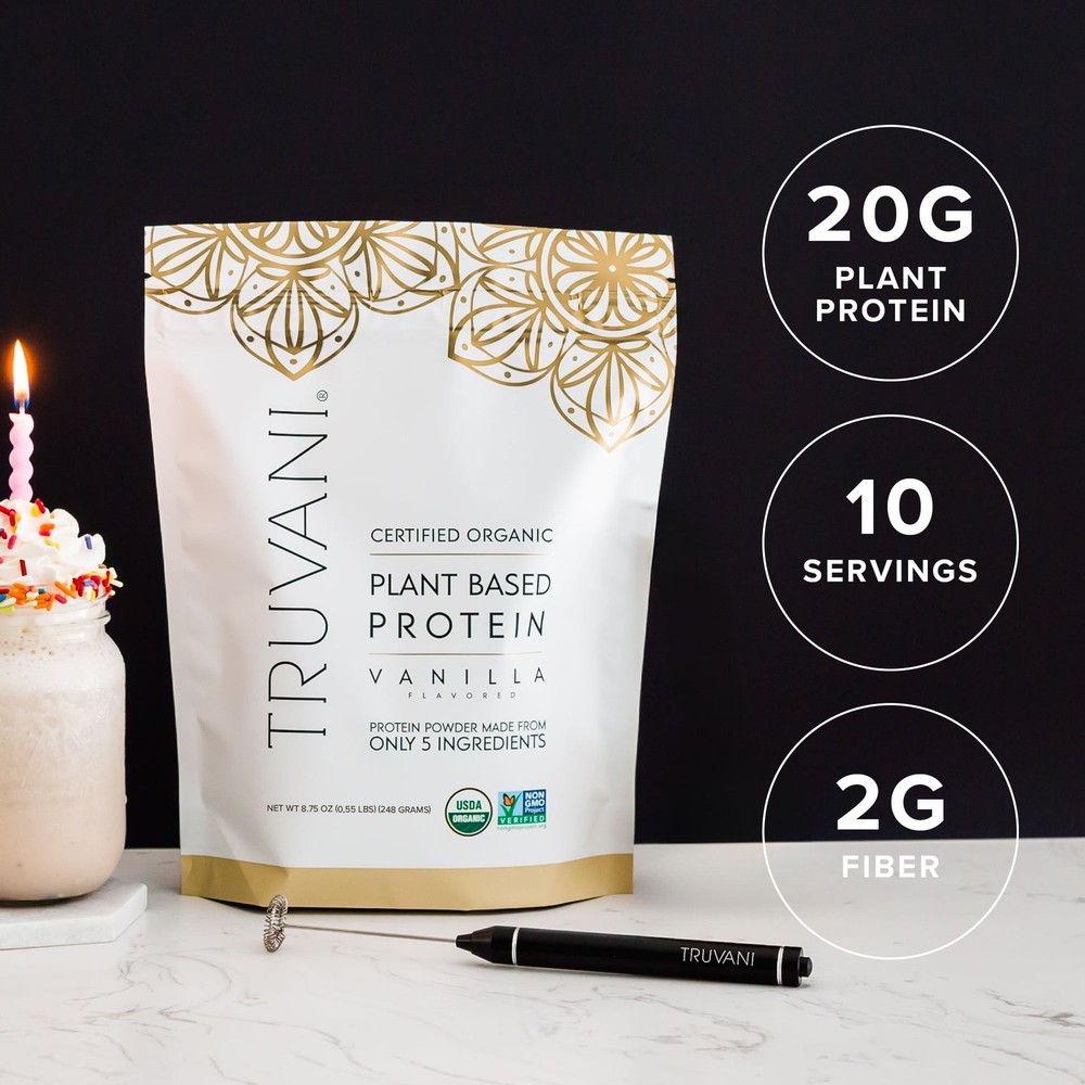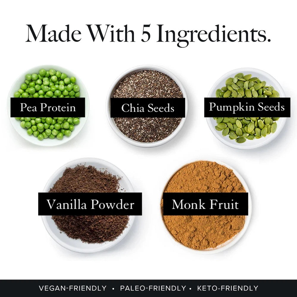 USDA organic. No stevia. We use as few ingredients as necessary from the best sources possible. And nothing more. Protein Powder, Plant Based, Vanilla Flavored USDA Organic, Certified Vegan, NON-GMO Verified, Gluten Free Certified, Dairy Free, Soy Free Only certified organic ingredients. Easy way to get enough protein Not chalky or grainy like other protein powders. Tastes like a dessert. Delicious Vegan Protein Shake: Add a scoop to your morning smoothie or post-workout shake for a delicious protein boost; Our plant protein powder provides a rich flavor without a chalky or grainy texture Supports Muscle Recovery : Our dairy free protein provides your muscles with protein, allowing you to build & maintain healthy, lean muscles; Satisfy your sweet tooth while boosting protein intake & supporting muscle maintenance