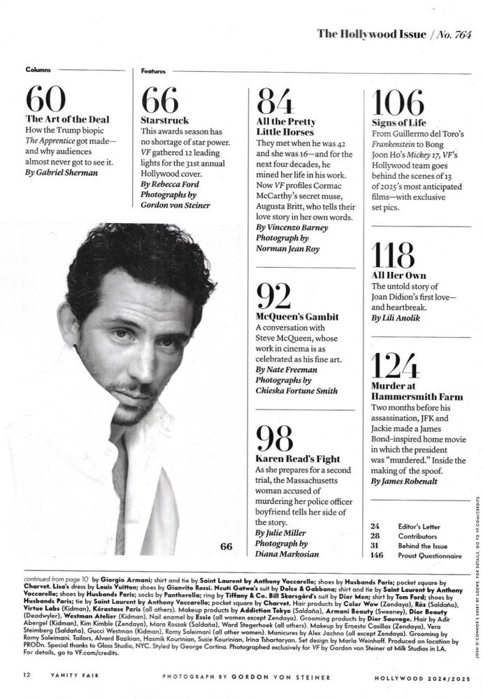 Vanity Fair Hollywood Issue ALSO FEATURED: JFK Steve McQueen Gift guide Cormac McCarthy's muse Joan Didion Karen Read