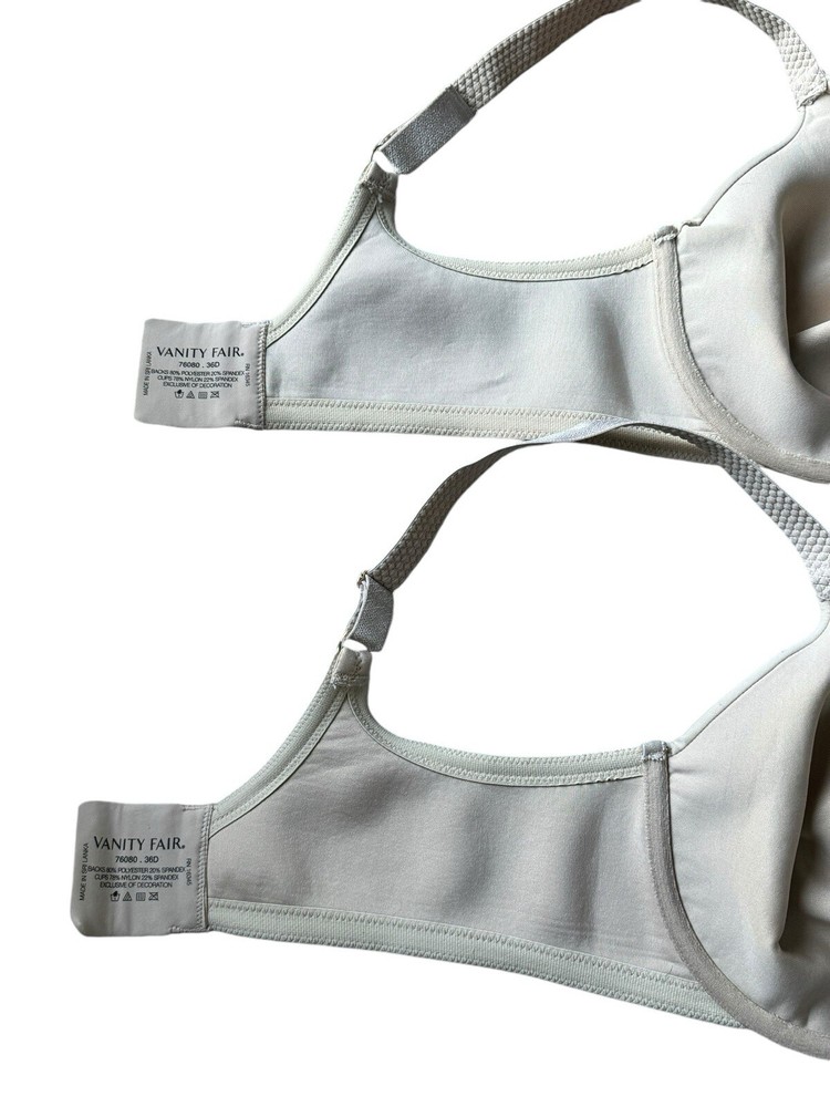 Elevate your everyday wardrobe with this classic Vanity Fair Beauty Back full-figure underwire bra in a size 36D. Designed to provide a smooth and seamless silhouette, the bra features adjustable straps, a hook and eye closure, and is crafted from a blended fabric with a solid beige color. The t-shirt bra style offers a comfortable and supportive fit, perfect for wearing under any outfit. This Vanity Fair bra is a must-have for any woman's intimate collection. With its timeless design and high-quality construction, it is sure to provide years of comfortable wear. Get ready to feel confident and comfortable in this classic Vanity Fair bra.
