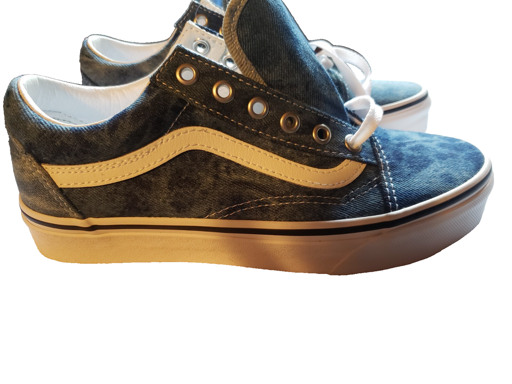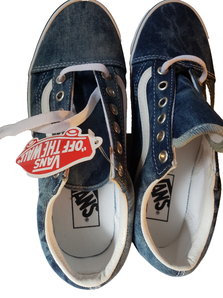 The product is a rare pair of Vans shoes in blue denim color, featuring the Vans Authentic style. These popular sneakers are designed for unisex adults in a US shoe women's size 7, making them a versatile and comfortable choice for everyday wear. The Vans brand is known for its quality and unique style, making these shoes a popular choice for those looking for a classic and on-trend footwear option. BRAND NEW with tags!!!