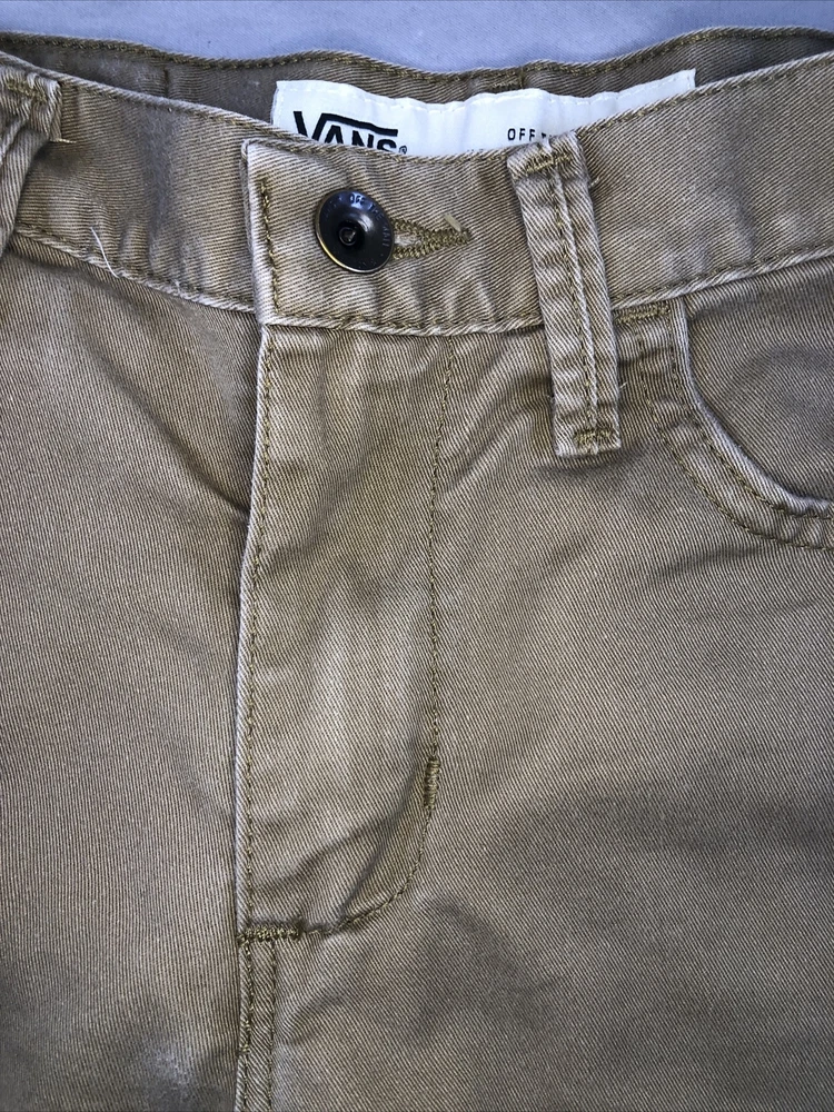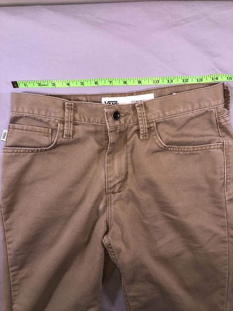 Material:CottonFabric Wash:DarkBrand:VANSStyle:ChinoFeatures:PocketsFit:RegularCountry/Region of Manufacture:UnknownAccents:ButtonColor:BrownCharacter:menDepartment:MenCharacter Family:Free!gtin13:Does not applySize Type:RegularPattern:SolidOccasion:CasualFront Type:Flat FrontUPC:Does not applySize:28Waist Size:28 inTheme:AmericanFabric Type:CanvasVintage:No