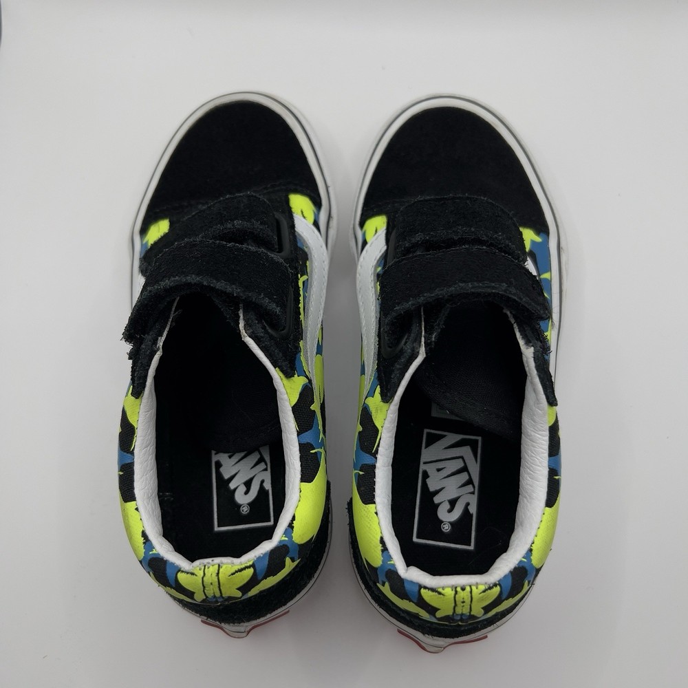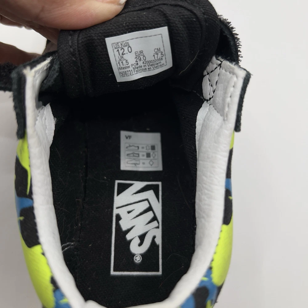 The Vans Multi Color sneakers in size US kids Size 12.0 feature a glow-in-the-dark design, perfect for casual occasions during the summer, fall, or spring seasons. Made of canvas with a rubber cleat type, these lace-up shoes have a low top style with a round toe shape and flat heel height for comfort. With the iconic Vans logo as accents, these athletic sneakers are ideal for skateboarding activities and everyday wear. Made in Vietnam, the Vans Old Skool product line ensures quality and style for both boys and girls.