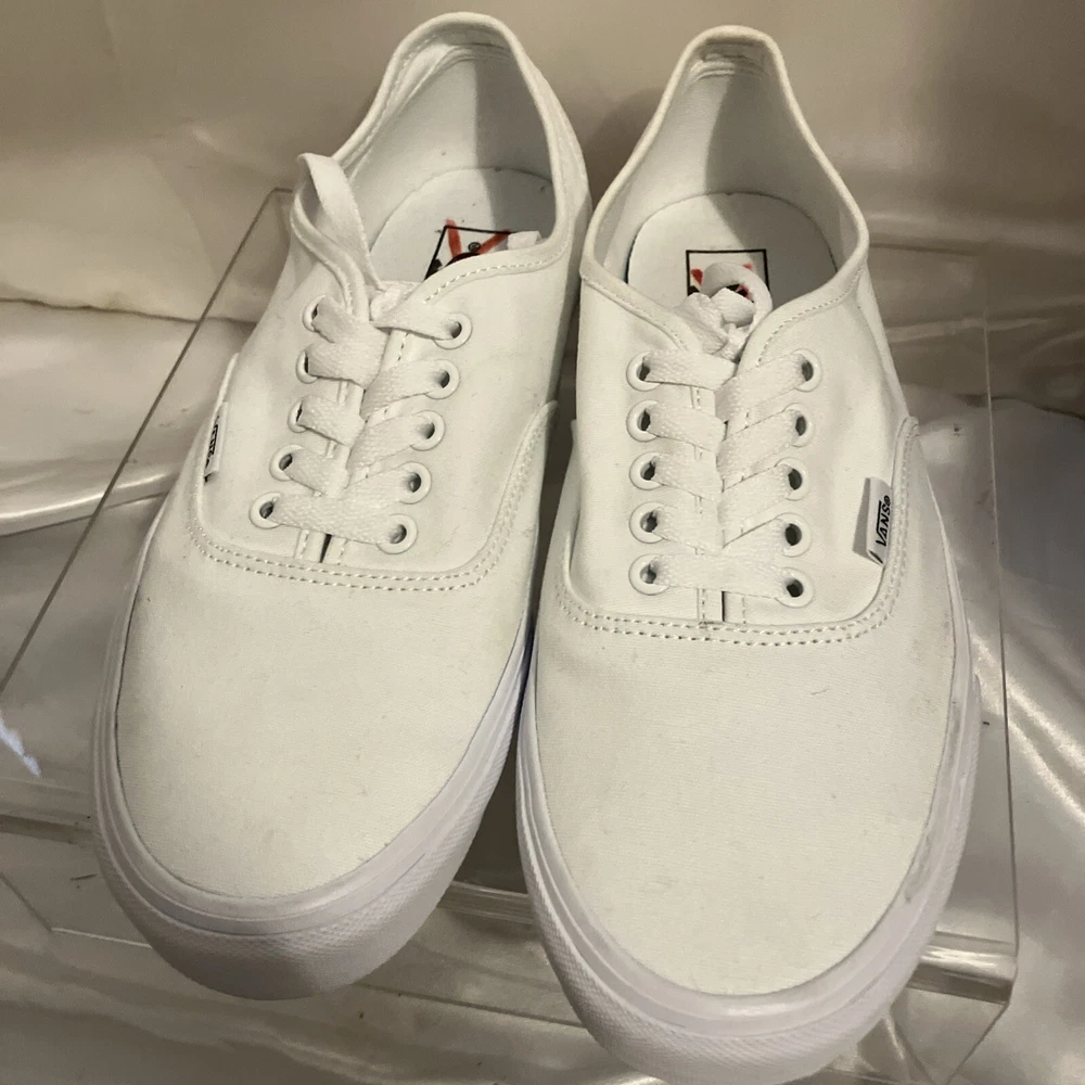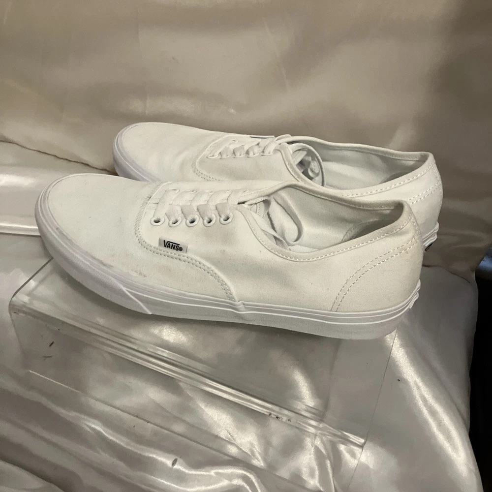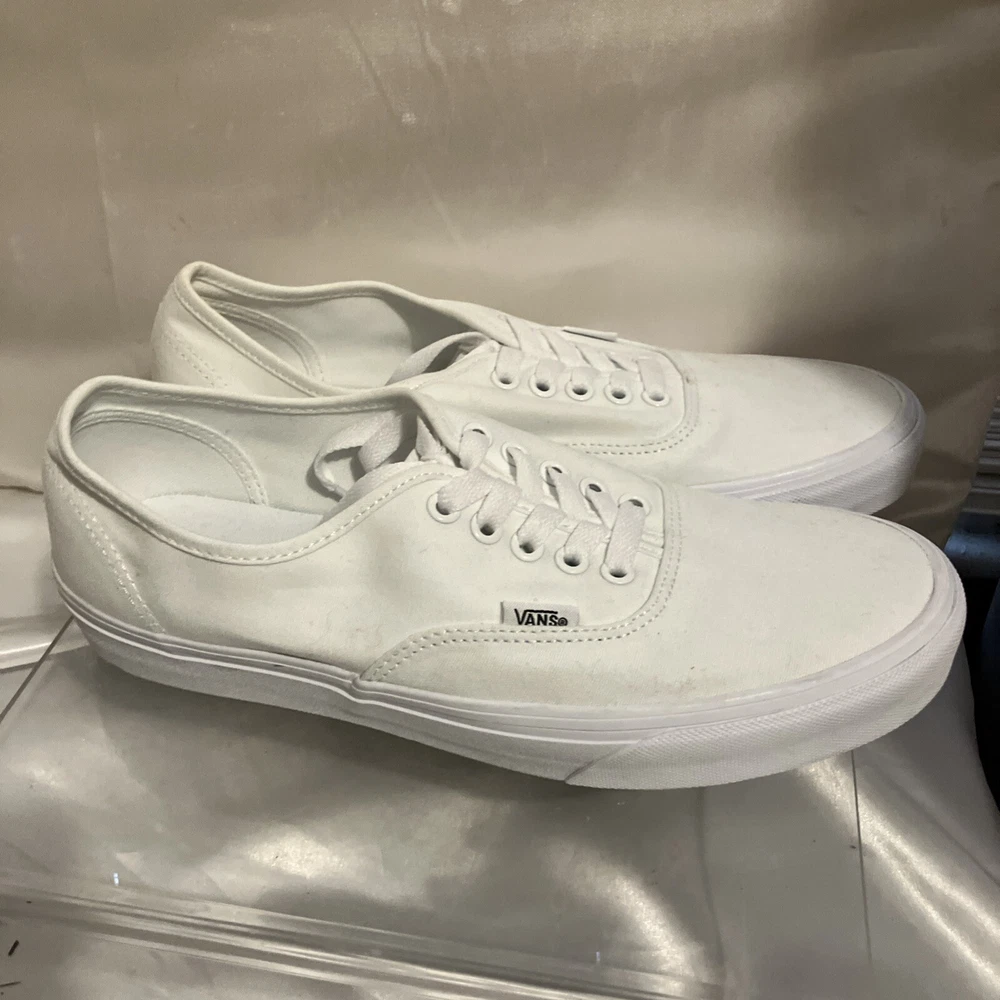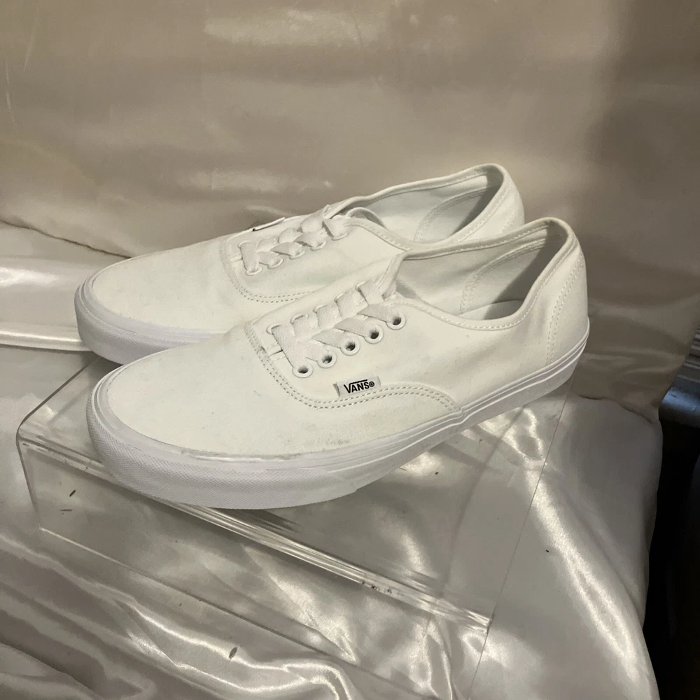 Embrace the classic skate style with the Vans Off The Wall Low Canvas Trainers. These iconic sneakers, in an all-white design, deliver a clean and versatile look suitable for any casual occasion. The durable canvas upper and lining ensure comfort and breathability, while the robust rubber outsole provides excellent grip on various surfaces. Available in a women's US size 10.5 (equivalent to a UK size 8 and an EU size 42), these trainers feature the timeless lace-up closure for a secure fit. The low-top silhouette allows for a full range of motion, making them ideal for enthusiasts who value both form and function in their footwear. Whether you're hitting the streets or the ramps, these Vans are a solid choice for any season.