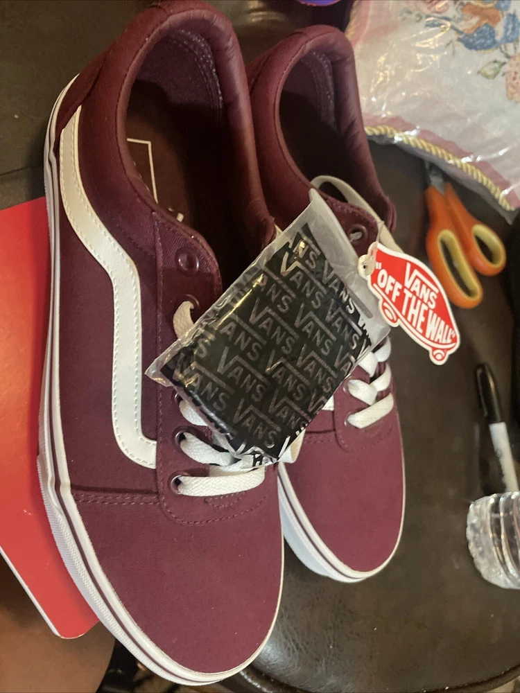 Elevate your skate style with these Vans Off The Wall Old School Women Shoes. The burgundy and white color combination will make you stand out in a crowd while the comfortable fit and athletic style will keep you going all day long. These sneakers are perfect for any woman who wants to add a touch of style to her wardrobe. With a US shoe size of 10, these sneakers are made for women who want to make a statement with their footwear. The Vans Off The Wall model is designed for women who love sneakers that are both stylish and functional. These sneakers are perfect for any woman who wants to add a touch of style to her wardrobe. The red color and athletic style make them perfect for any occasion. The sneakers are made for women who love sneakers that are both stylish and functional. The Vans Off The Wall Old School Women Shoes are the perfect addition to any woman's shoe collection.