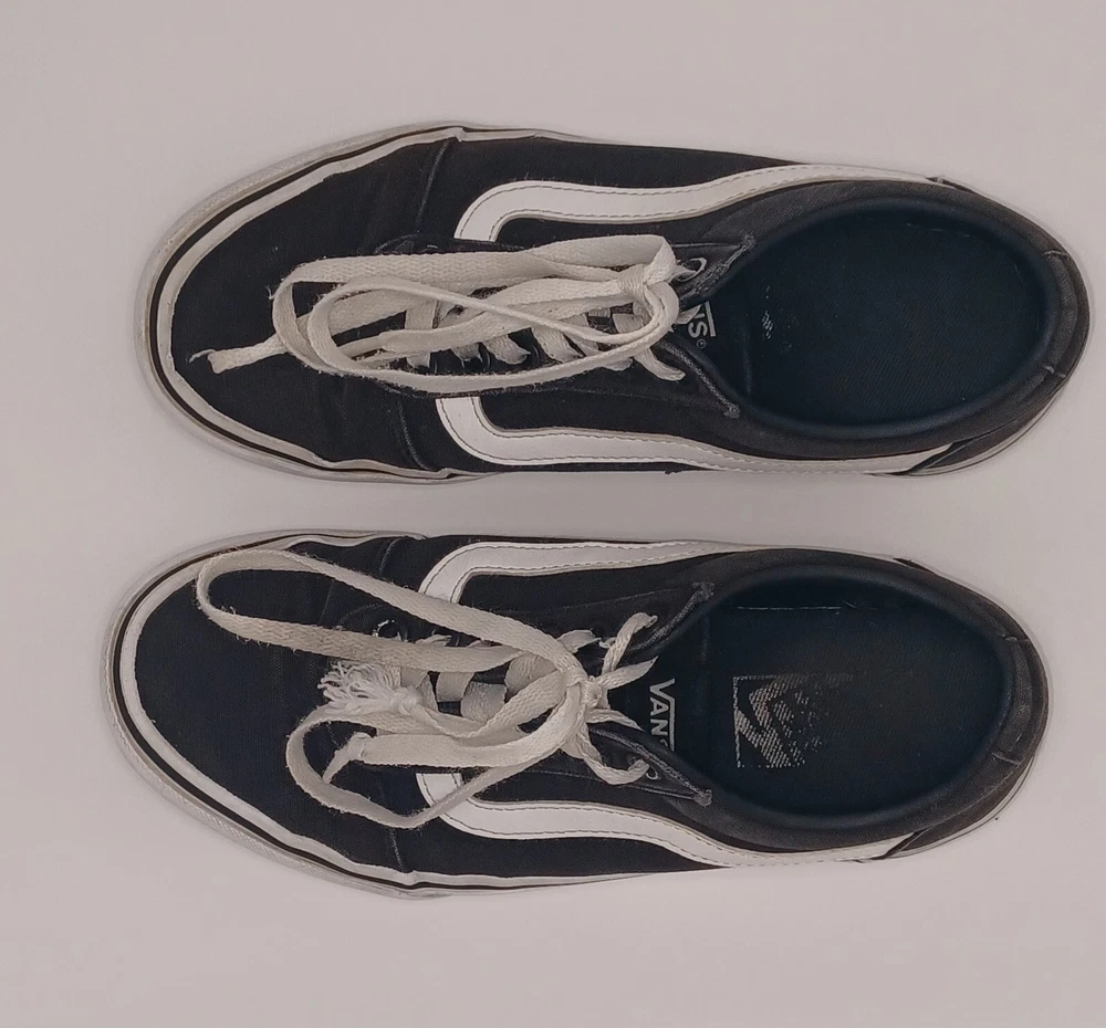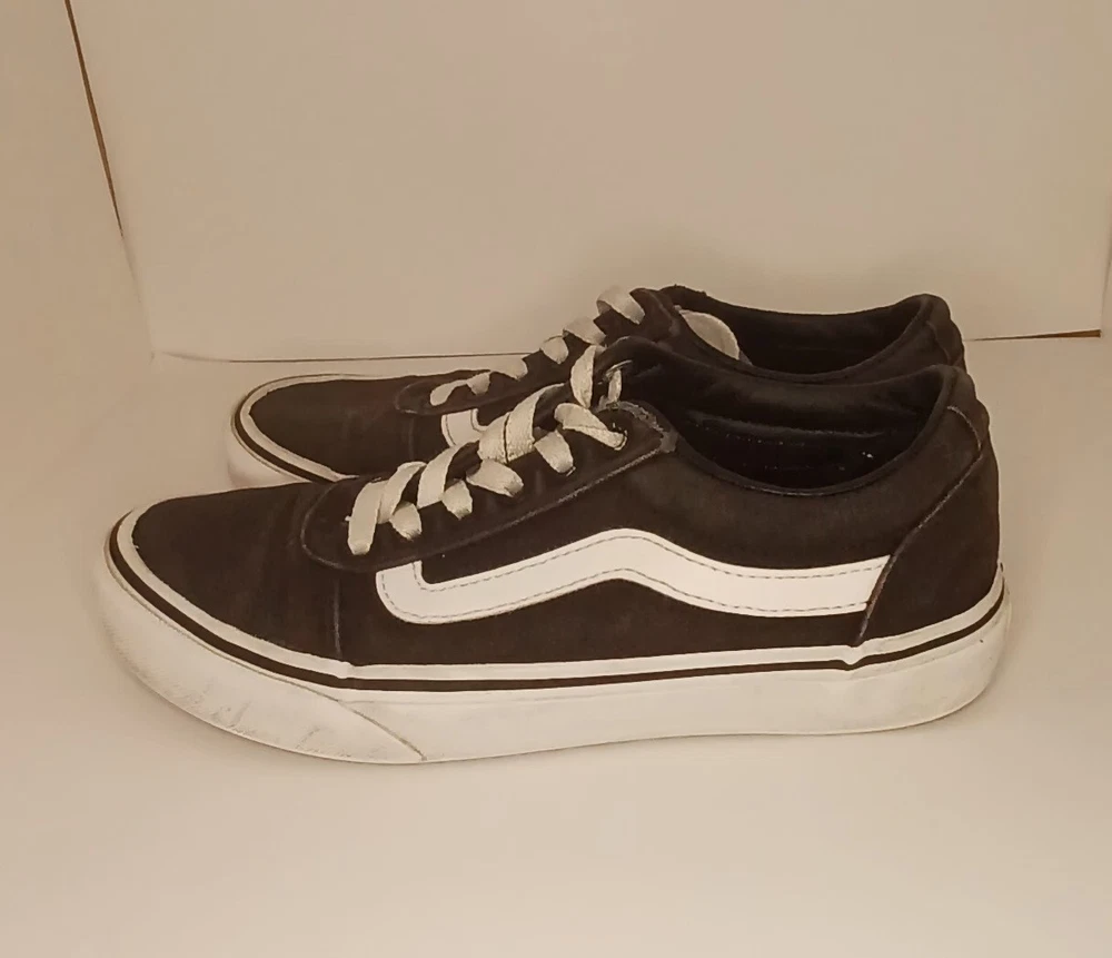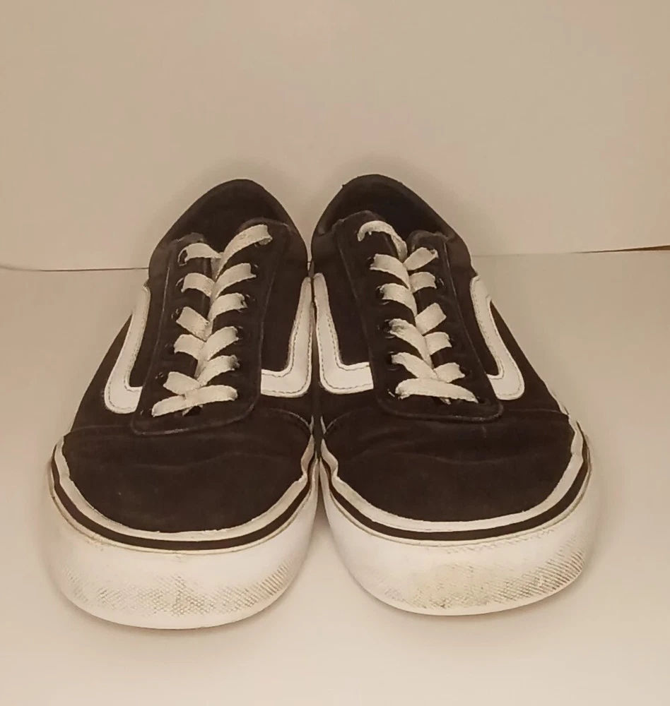 Elevate your casual style with these classic Vans Old Skool sneakers. The black and white colorway with a solid pattern and low top shoe shaft style makes them a versatile choice for any occasion, from walking to school to even skateboarding. The lace-up closure ensures a secure fit, while the cushioned, comfortable, and breathable features make them ideal for all-day wear. These unisex athletic shoes are made with canvas upper material and are part of the Vans Old Skool product line. They come in women's US size 7 and are perfect for those who want a colorful and classic look. Get ready to step out in style with these Vans Old Skool sneakers, suitable for any season - winter, summer, fall, and spring.