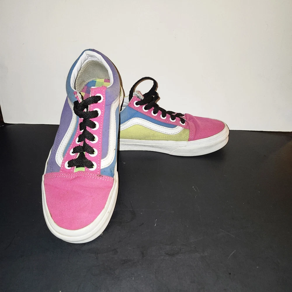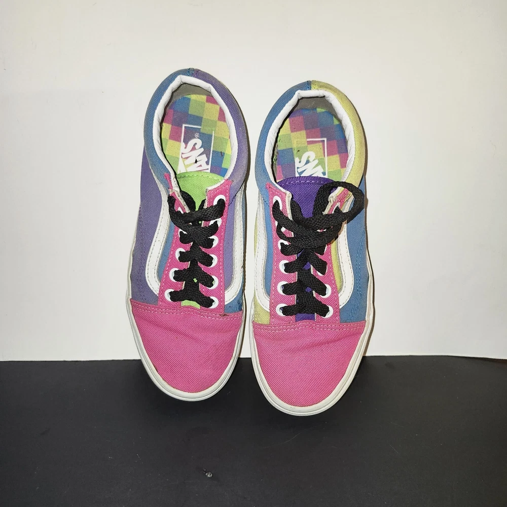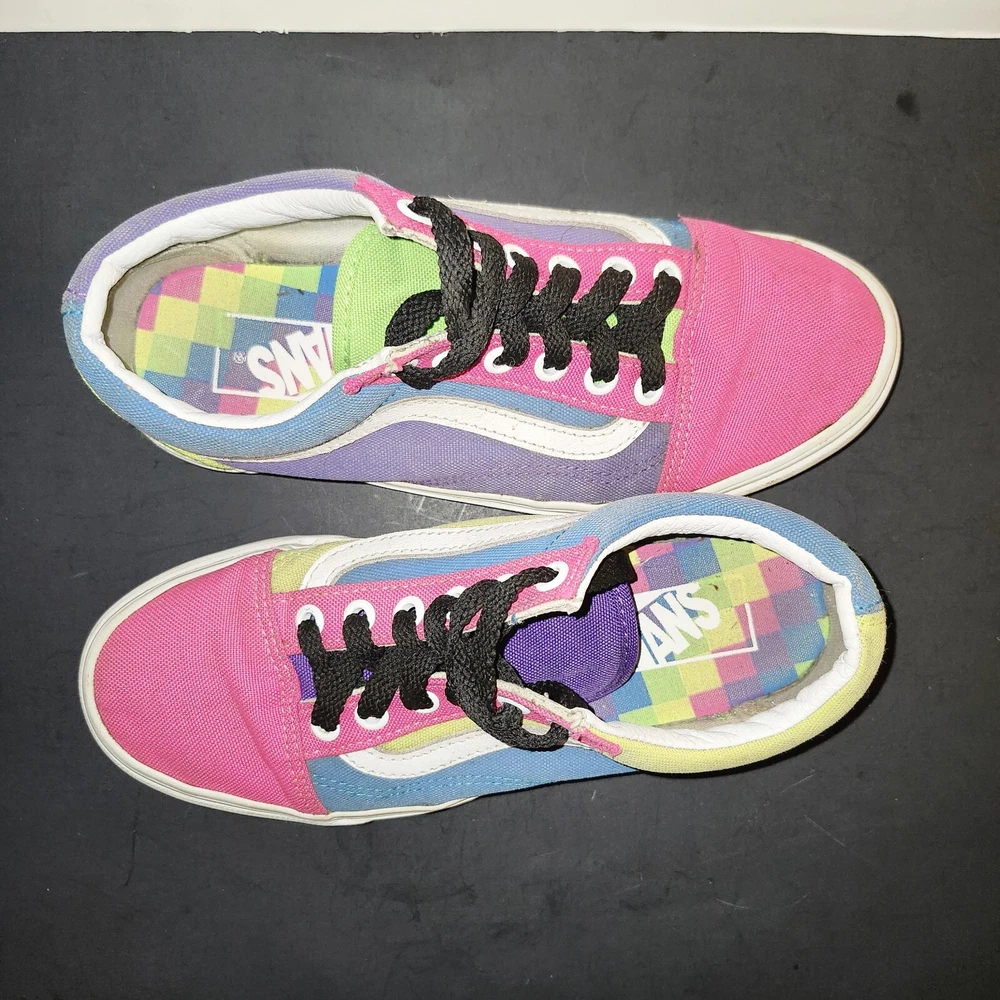 This listing is for a pair of Vans Off The Wall sneakers in a neon color block design . US Woman size 6, US Men size 4.5, UK size 3.5, EUR size 36.0, CM size 22.5. The shoes feature a low top shaft style with a colorblock pattern with bright pink, blue, purple, and green. perfect for adding a pop of color to style. Great for a bold and colorful personality. Perfect for those who appreciate colorful and vibrant footwear with a touch of retro flair. I DON’T use stock photos, you will receive the EXACT item pictured. Comes from a Non-Smoking Household! I’m not an expert by any means. My definition of great or good condition could vary from someone else. All the detail I have is from my experience of being a mom, or what I could find by doing a quick Google search. I will do my best to be detailed and accurate. I am always open to learning, so if I missed something, please let me know. I do combine shipping. I try to hit the post office every Monday, Wednesday, and Friday. I try to ship the items the day of or the day after payment is made. if more time is needed for payment, or you need me to hold for a few extra days, communication is greatly appreciated, and I WILL WORK WITH YOU. I live in an extremely rural area, 35–45 minutes away from the city and the town post office. I do my best to get the shipping cost as long as possible, but it might be a little higher than someone who lives in a city, sorry. :( USPS ground is used primarily, unless otherwise marked or requested. Thank you for looking, and if you read all of this, I hope you have a great day!!! :) Happy bidding.