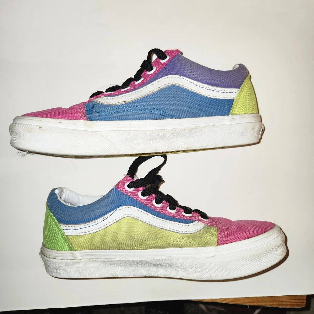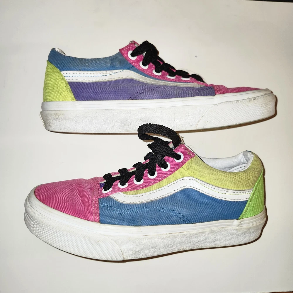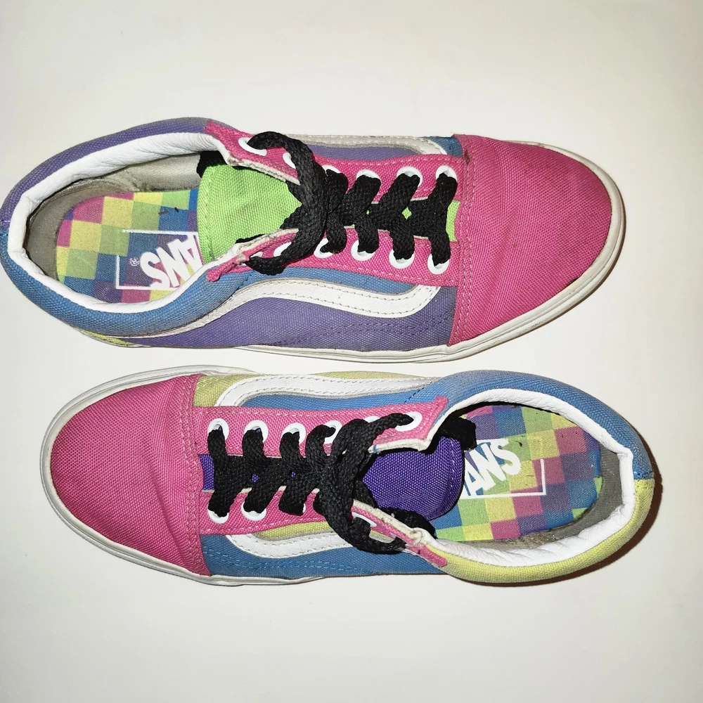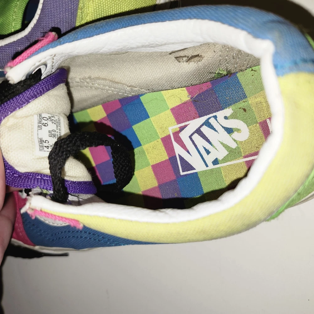This listing is for a pair of Vans Off The Wall sneakers in a neon color block design . US Woman size 6, US Men size 4.5, UK size 3.5, EUR size 36.0, CM size 22.5. The shoes feature a low top shaft style with a colorblock pattern with bright pink, blue, purple, and green. perfect for adding a pop of color to style. Great for a bold and colorful personality. Perfect for those who appreciate colorful and vibrant footwear with a touch of retro flair. I DON’T use stock photos, you will receive the EXACT item pictured. Comes from a Non-Smoking Household! I’m not an expert by any means. My definition of great or good condition could vary from someone else. All the detail I have is from my experience of being a mom, or what I could find by doing a quick Google search. I will do my best to be detailed and accurate. I am always open to learning, so if I missed something, please let me know. I do combine shipping. I try to hit the post office every Monday, Wednesday, and Friday. I try to ship the items the day of or the day after payment is made. if more time is needed for payment, or you need me to hold for a few extra days, communication is greatly appreciated, and I WILL WORK WITH YOU. I live in an extremely rural area, 35–45 minutes away from the city and the town post office. I do my best to get the shipping cost as long as possible, but it might be a little higher than someone who lives in a city, sorry. :( USPS ground is used primarily, unless otherwise marked or requested. Thank you for looking, and if you read all of this, I hope you have a great day!!! :) Happy bidding.