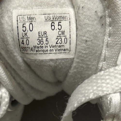 US Shoe Size:5Department:MenModel:VANS Old SkoolUK Shoe Size:4Upper Material:CanvasType:AthleticCountry of Origin:VietnamEU Shoe Size:36.5Shoe Width:StandardShoe Shaft Style:Low TopStyle:SneakerBrand:VANSColor:WhiteStyle Code:500714Product Line:VANS Old Skool