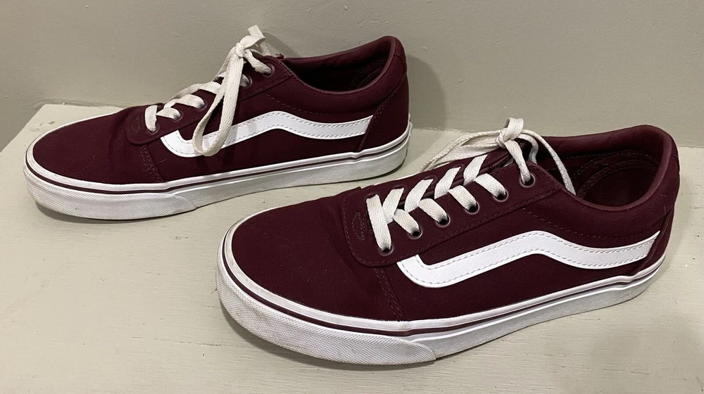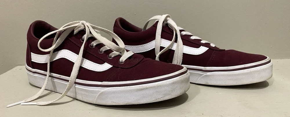 Step out in style with these Vans Old Skool Skate Shoes in a beautiful burgundy color. These sneakers are perfect for women who want to stay comfortable and trendy at the same time. They come in a size 8 and are made of high-quality canvas material. These shoes are part of the Vans Old Skool product line and are a 2021 release. They are not customized and are suitable for everyday wear. Whether you're going to the skate park or just running errands, these shoes will keep you looking great. So why wait? Get yourself a pair today!