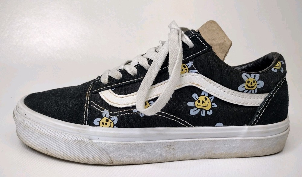 Vans Old Skool Trippy Grin Floral Black Unisex Skate Sneakers Womens 7 Mens 5.5