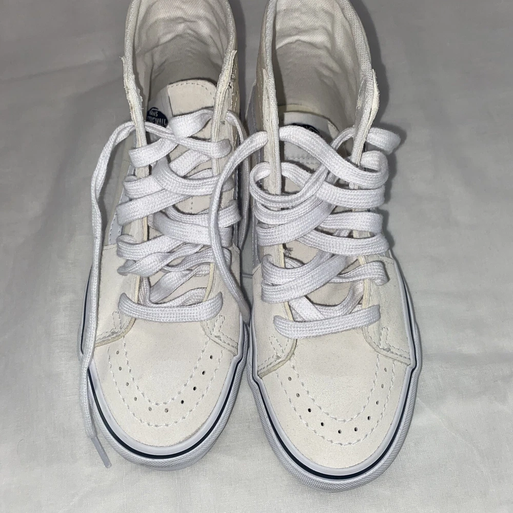 Vans SK8 HI Womens Size Women’s 6.5 All White Canvas High Top Skateboard Shoes. Condition is Pre-owned. Shipped with USPS Ground Advantage.