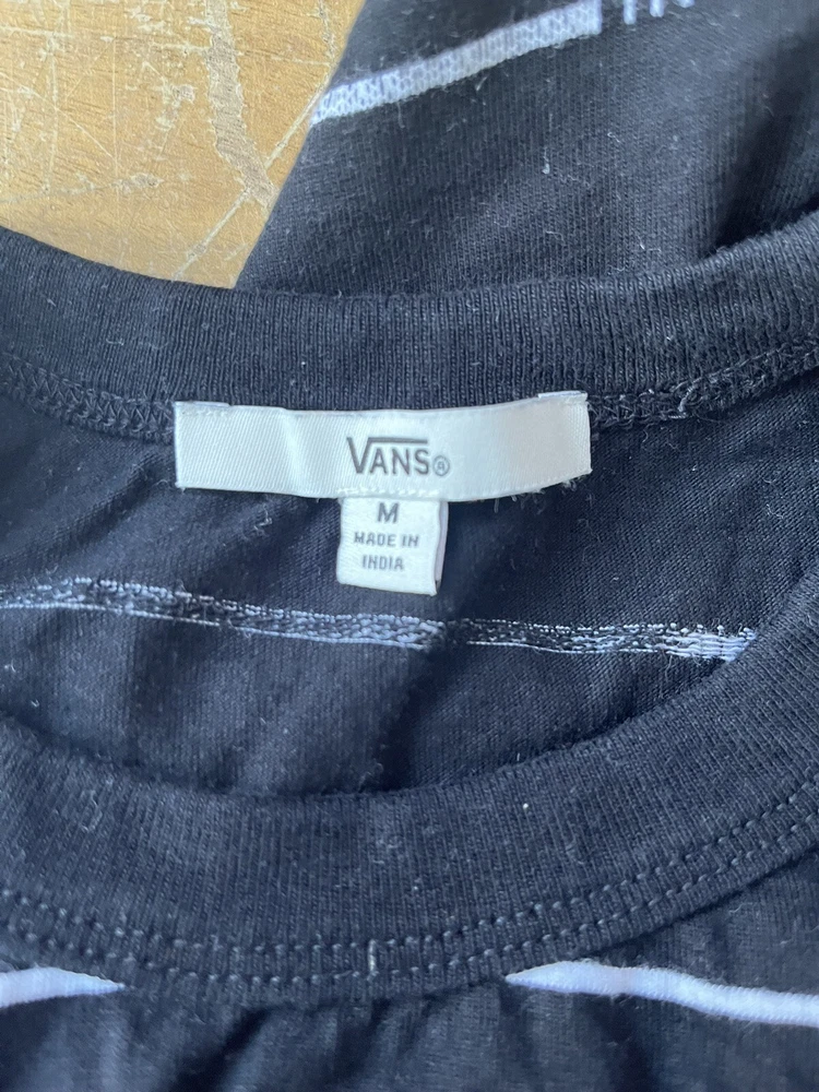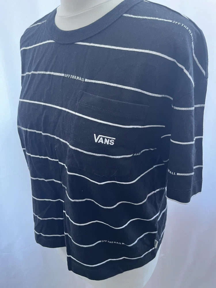 Vintage: No Season: All Seasons Closure: Pullover Size: M Fit: Regular Style: Cropped Theme: Casual Strap Type: Does Not Apply Character: Does Not Apply Garment Care: Machine Washable Material: Cotton Personalisation Instructions: Does Not Apply Sleeve Length: Short Sleeve Features: Pockets Fabric Type: Jersey Pattern: Solid Neckline: Crew Neck Colour: Black Personalise: No Department: Women Sleeve Type: Regular Accents: Logo Type: T-Shirt MPN: Does Not Apply Country/Region of Manufacture: Does Not Apply Handmade: No Size Type: Regular Occasion: Casual Brand: Vans