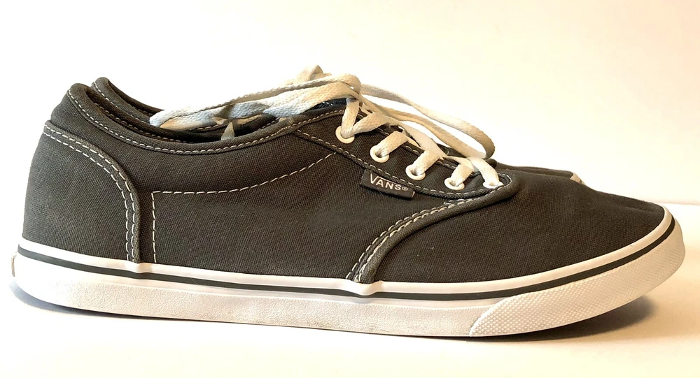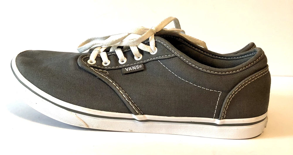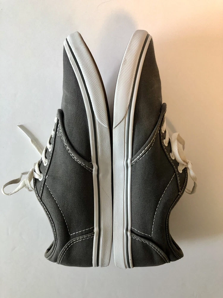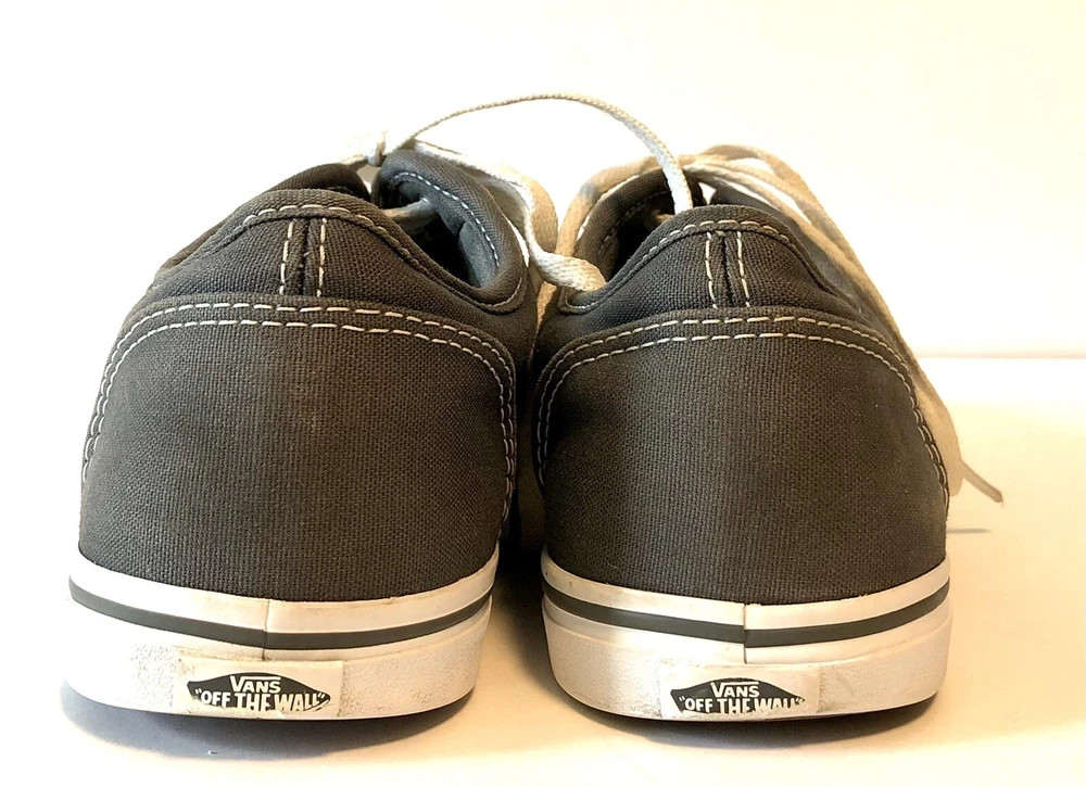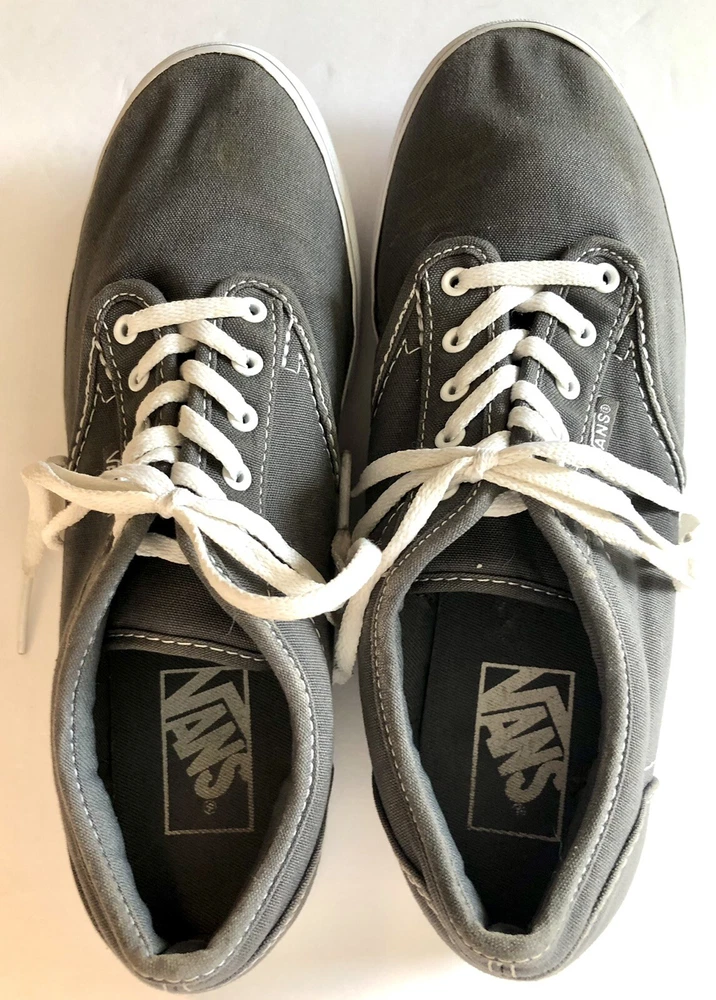 Vans Women’s Gray Skater Shoes, size 8. Good pre owned condition. There is a spot on the one shoe by the toe see photos. Bin K