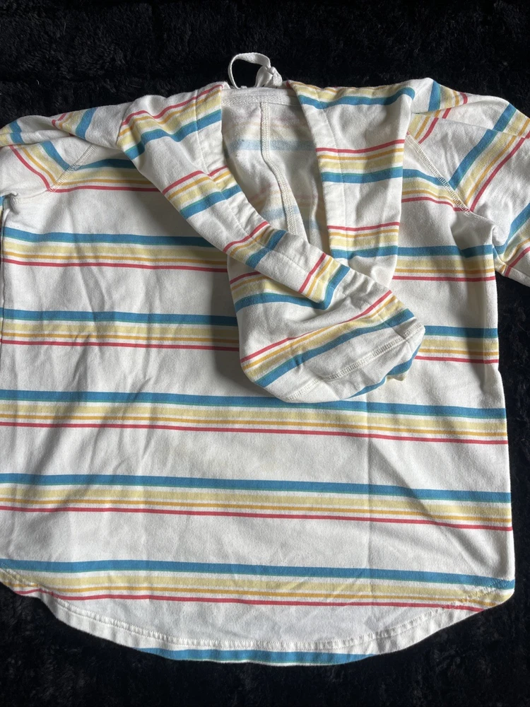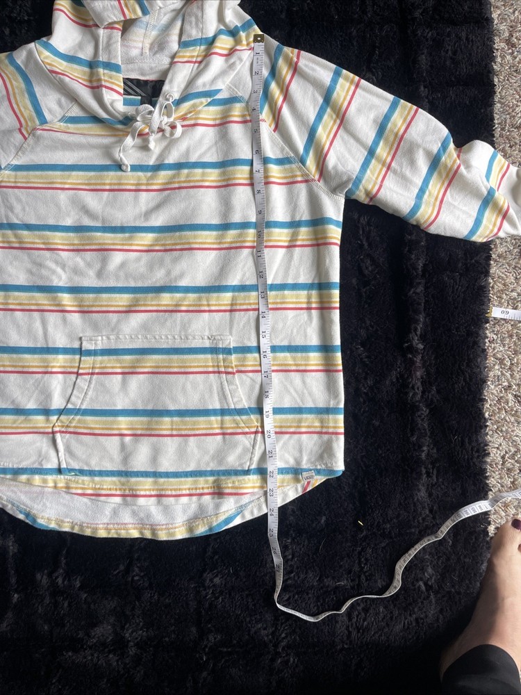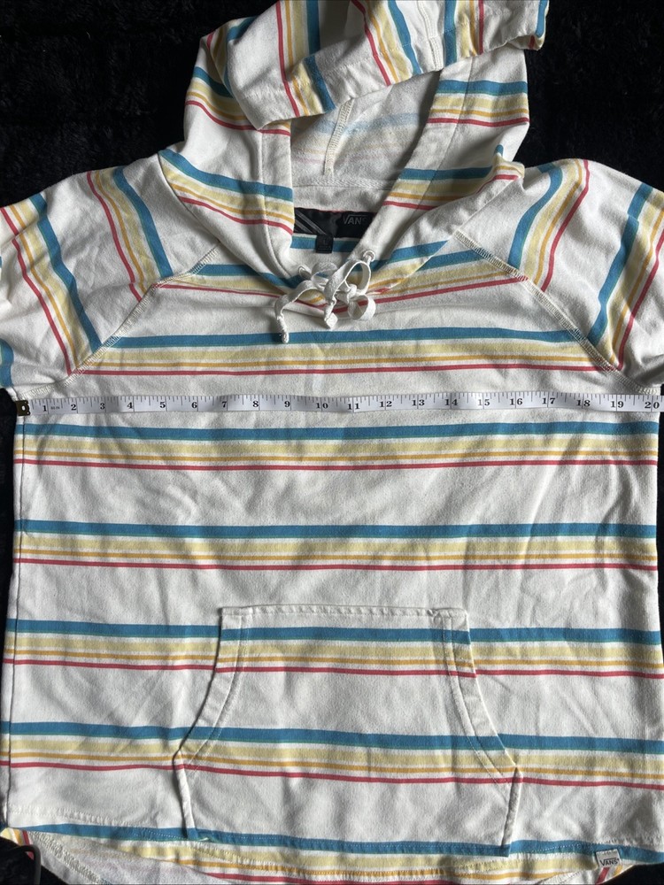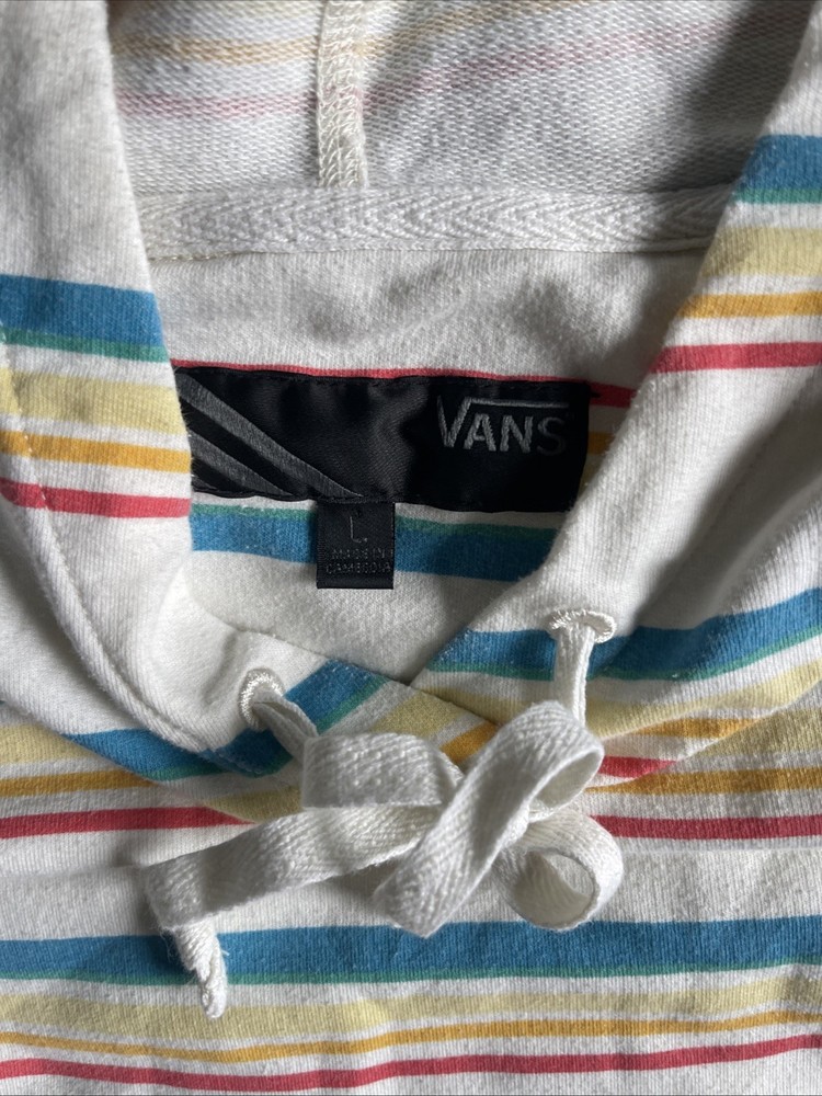 The Vans Women's Pullover Hoodie in size L is a stylish and cozy option for women looking for activewear. Made of cotton with a cream color and featuring stripes, this hoodie offers a regular fit and long sleeves for warm and comfortable wear during the winter, fall, and spring seasons. The pullover style, machine washable garment, and Vans logo accents make it a versatile choice for casual and sporty occasions.