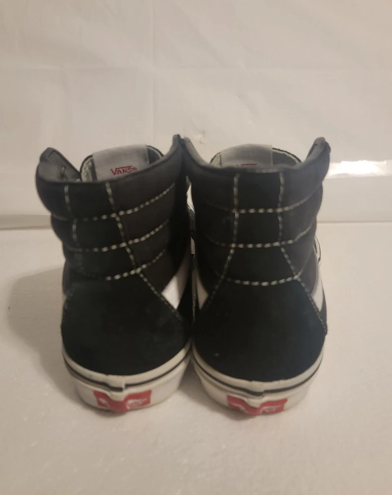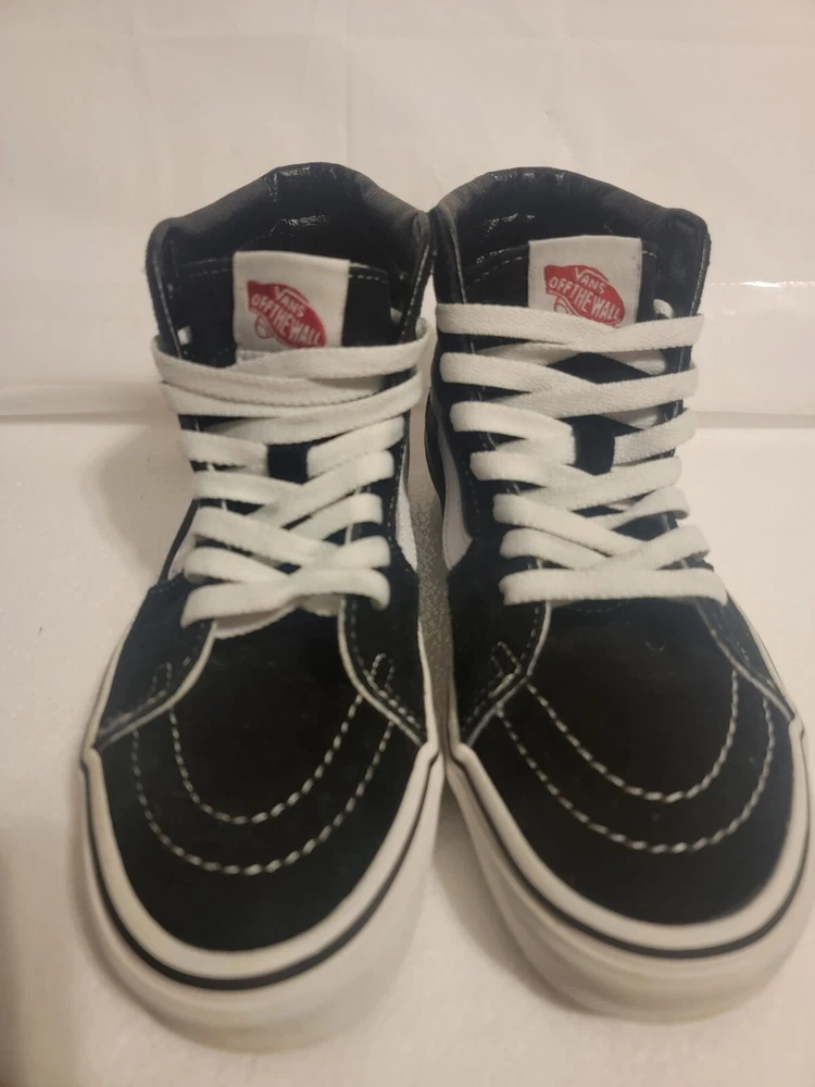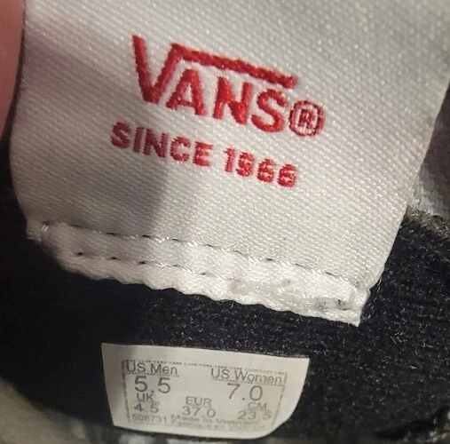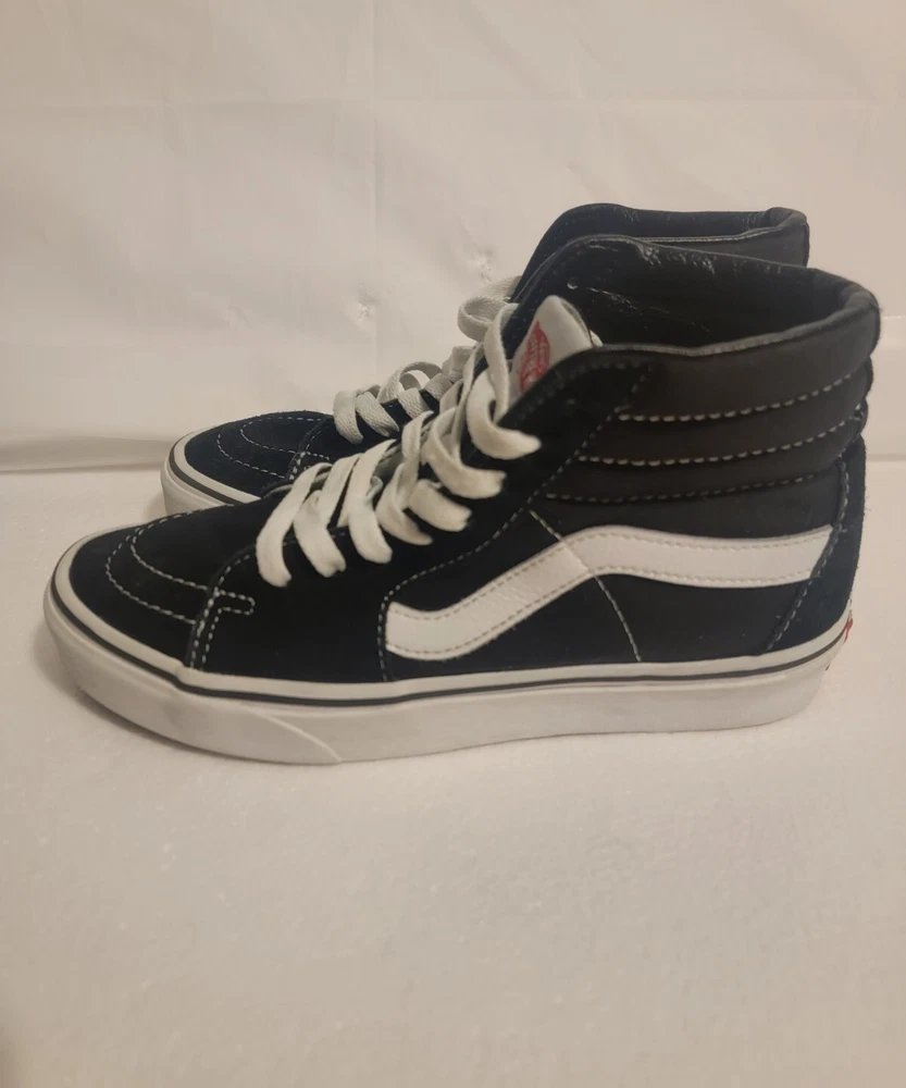 Up for sale is a pair of Vans SK8-Hi sneakers in black canvas material. These shoes are perfect for skateboarding and offer great comfort with their cushioned features. The high-top style provides ankle support and the colorful theme adds to their trendy look. These shoes are in great shape and ready for their new owner to enjoy. The UK shoe size is 4.5 and the US shoe size is 5.5, making them a perfect fit for both men and women with a shoe size of 7. The lining and upper material are both made of canvas and the shoes were manufactured in China. Don't miss out on the chance to own these Vans Sk8-Hi sneakers!