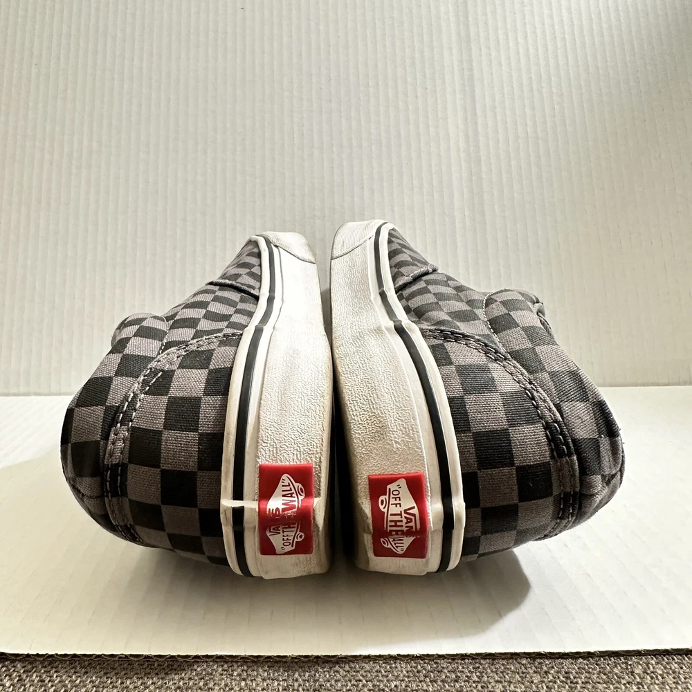 The product is a Vans Old Skool sneaker in black and gray, featuring a checkered pattern on a canvas upper material. Designed for youth and teens, this casual lace-up shoe is a low skate sneaker style that is both stylish and comfortable. The size is a US Youth 6, ideal for younger individuals looking for a trendy and versatile footwear option. Lace changed