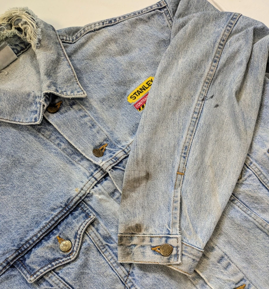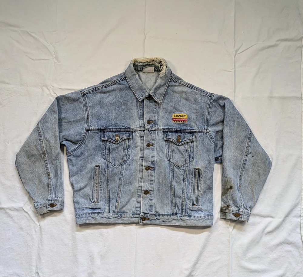 Vantage Club Vintage Denim Jean Jacket Mens Size Large L Stanley Contractor