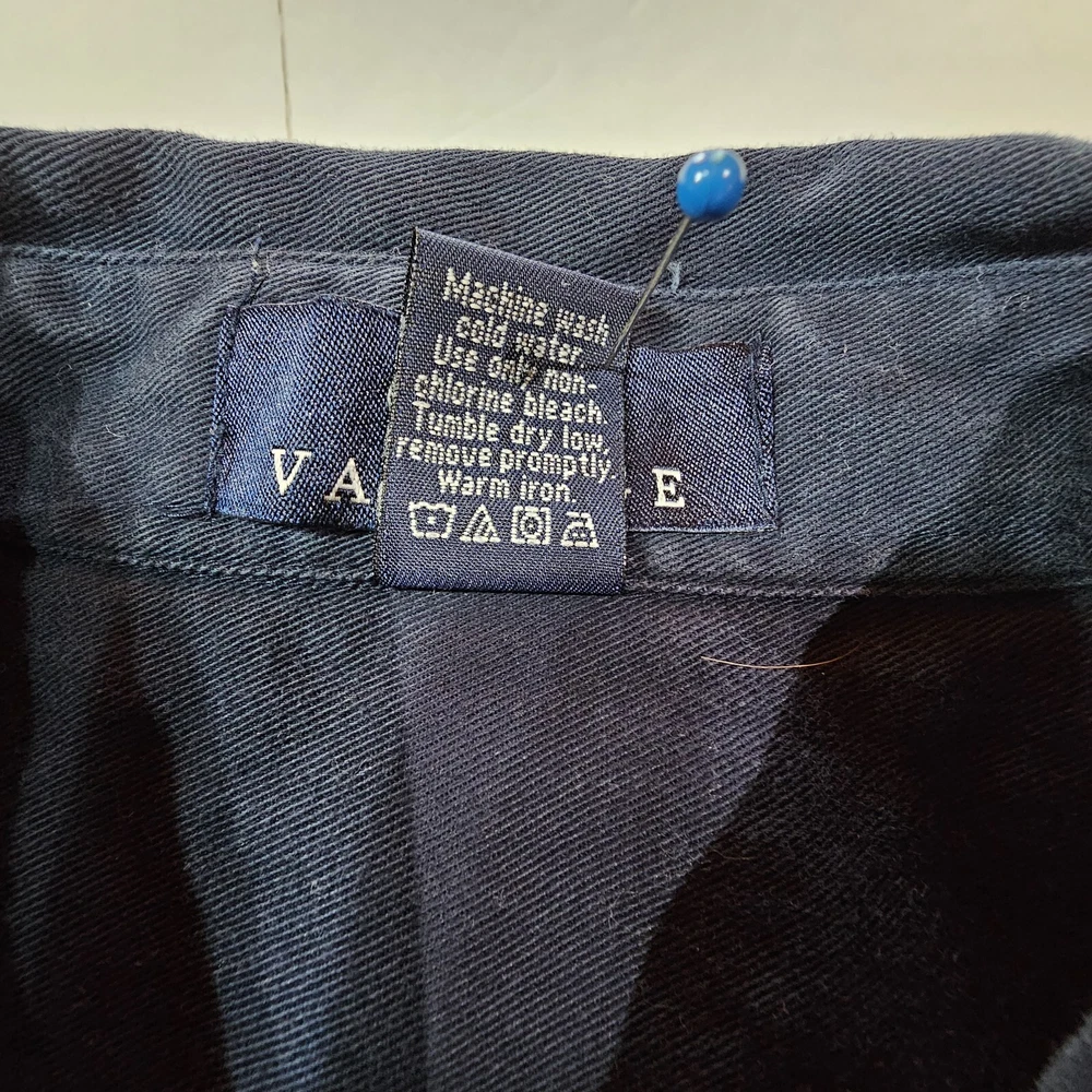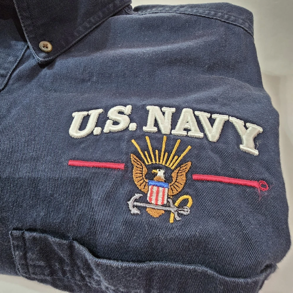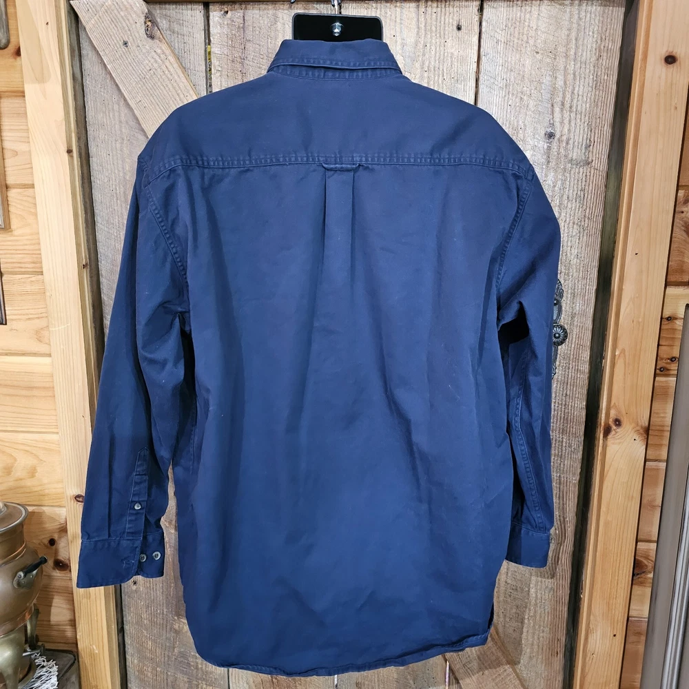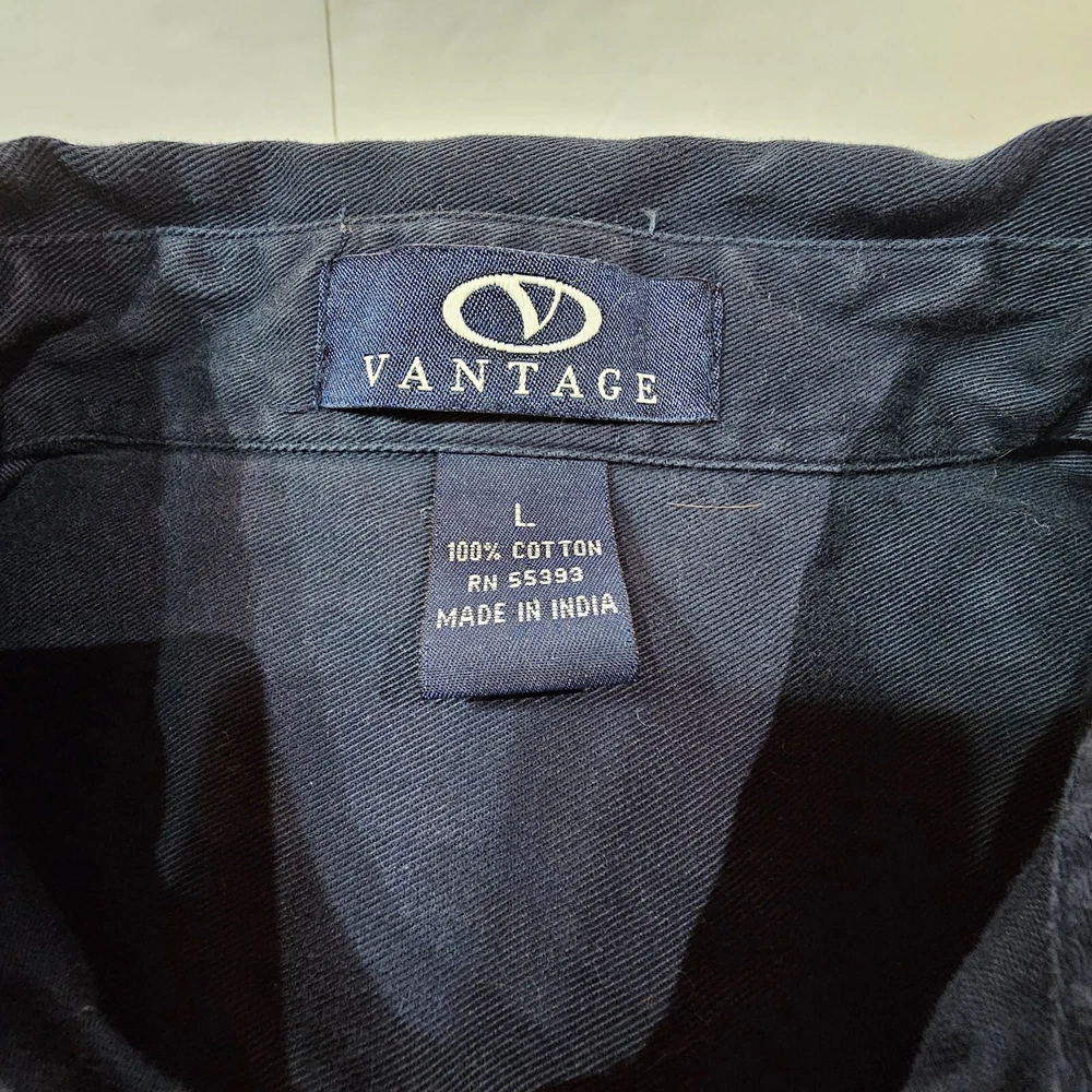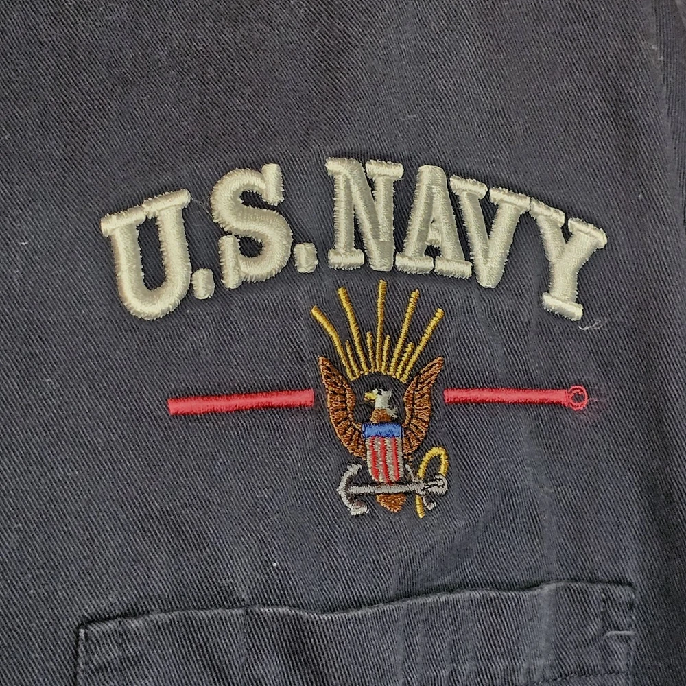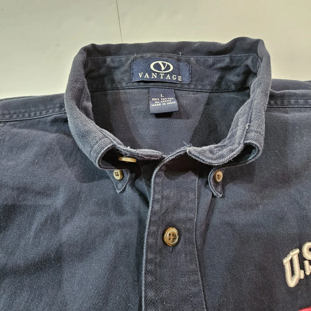 Vantage US Navy Mens Large Blue Long Sleeve Button-Down Woven Shirt EUC Chest-24.75" across pit to pit Length-26"-31.5" (side seams to middle of shirt) Sleeve length from neck-30.5" Sleeve length from shoulder seam-23.25"