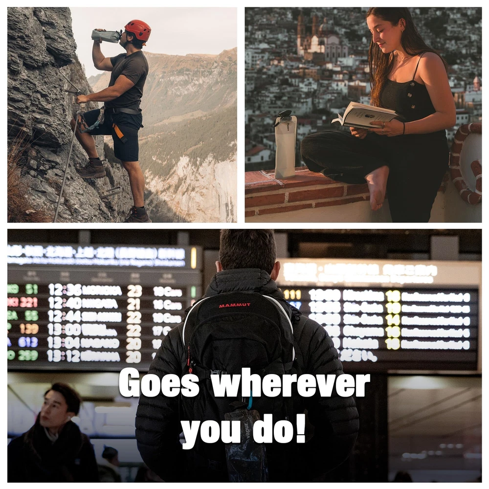 It's no water bottle, it's an Anti-Bottle. What does it mean to be an Anti-Bottle? It means reusable, foldable, attachable, freezable, sustainable convenience, all in one easy to grip, streamline bottle. It's a flexible product made specifically with active lifestyles in mind. The Anti-Bottle defies all the laws of what a water bottle "should be". Unlike traditional rigid bottles, it lays flat when empty, and has the ability to be folded and stored where other bottles cannot. It's also BPA free, and super easy to wash. Vapur Collapsible and Flexible Water Bottle with Detachable Carabiner: Our anti-bottle stands when full and folds small when empty. Stores easily in pocket, purse, or backpack for portable hydration Spill-Proof Convenience: Vapur's collapsible water bottle cap has a tough seal with rubber stopper for a leak proof closure and a flip open spout for quick and easy hydrating Lightweight Wide Mouth Design: Our collapsible water bottle is designed with a wide mouth opening making it easy to fill and is lightweight weighing under 2 ounces when empty Easy to Clean, BPA-Free Bottle: Vapur's anti-bottle is easy to clean, dishwasher safe and made with sustainable BPA-Free food grade material to be reused for years Explore the Full Range of Vapur Products: Vapur offers a variety of collapsible water bottles, flasks, and wine carriers as well as the EZ Lick line, designed specifically for dogs