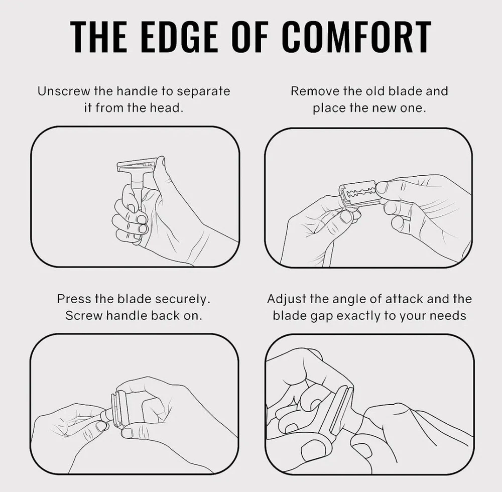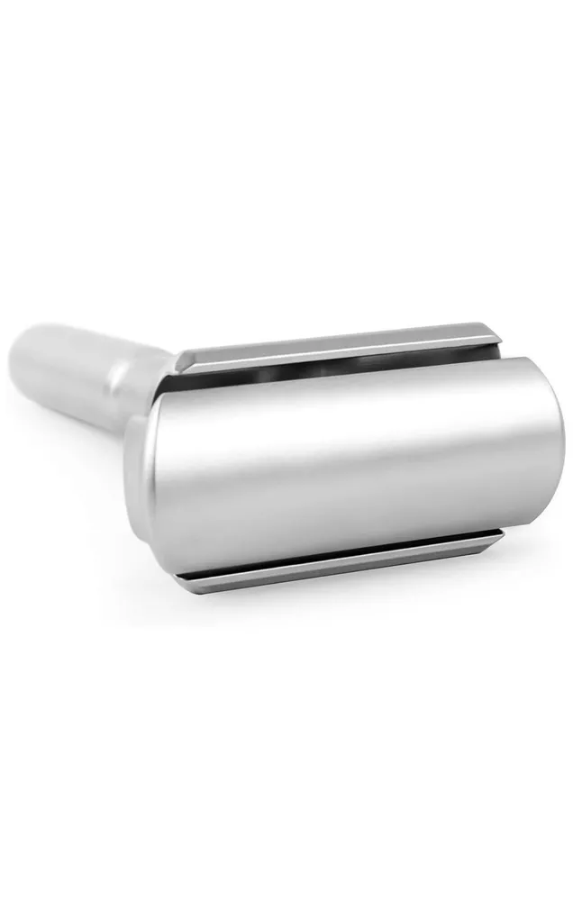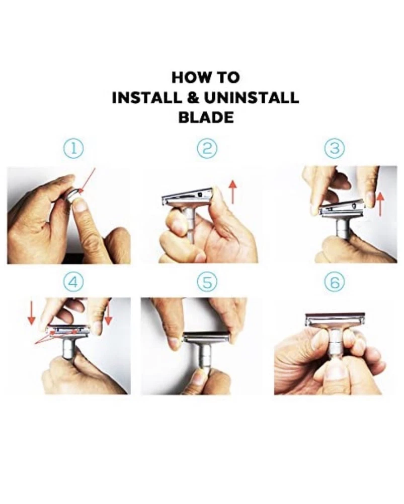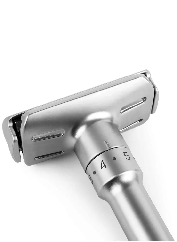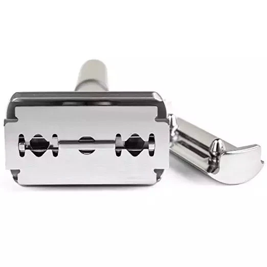 Shave Classic Adjustable Double Edge Safety Razor. Condition is "New". Shipped with USPS First Class. This adjustable razor gives you a lot of flexibility in terms of how you want it aggressive. If you want a relax shave, use it at a low setting. If you want take off three-day-stubble with ease, use it at medium or high setting. Caution: When you are adjusting the aggressiveness, please do so with dry hands. Always hold it on the sides of the head away from the sharp edges. Design and Quality Modern aesthetics and design with excellent craftsmanship Comes in brushed chrome satin. A truely beauty to behold The weight of the safety razor is very well distributed, allows you to pretty much let it do most of the work Long handle (4 inches) is great for men with large hands Easy Blade Change Unlike other razors that use a screw to hold the blade in place, this razor uses a clip. This design makes it easy to change the blade. Pop off the top plate with your thumb. Load the blade on the razor Pop the top plate back in place. Caution: When you are changing the blade, please do so with dry hands. Always hold it on the sides of the head away from the sharp edges. Leather Features & details Designed Adjustable Handle to set blade exposure levels from 1 to 6 High quality stand made by aluminum alloy, polished finish Package includes: 1 pc Razor, 1pc Stand, 1pc Genuine leather & 5 pcs Titanium coated Stainless Steel blades Handle measures 3.5 in. length. Razor total dimensions are 2 L x 1 W x4.25 H. Razor weights 90g Product information Regular Handle with Stand