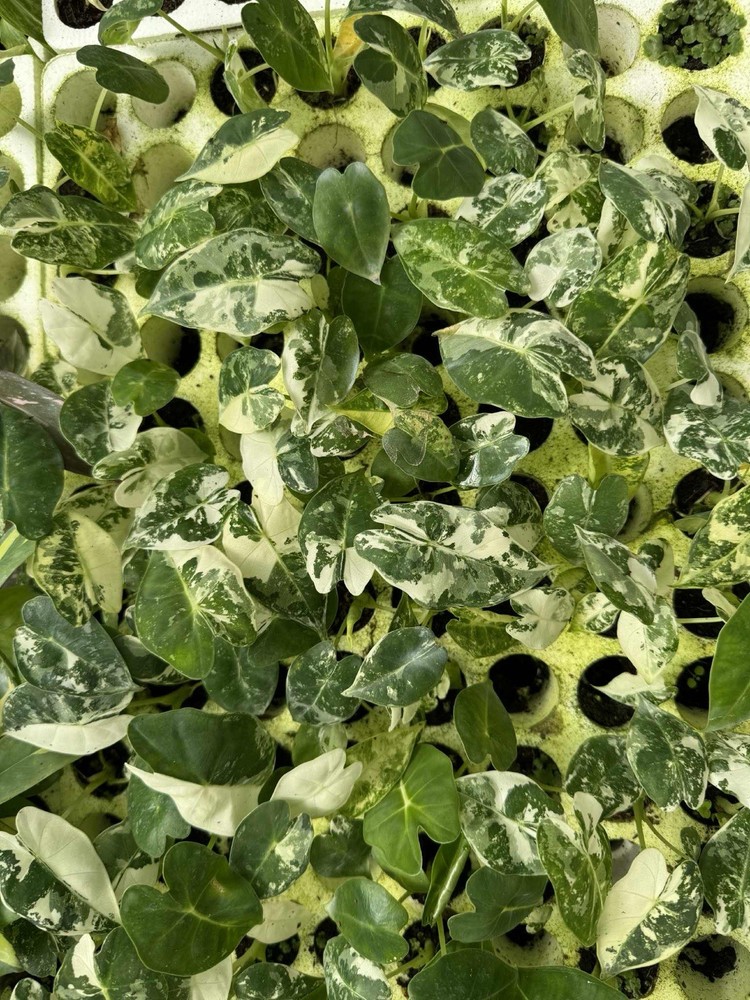 You are buying a listing for 1000 units of variegated alocasia Frydek plants. They are packed 6 plants in a bag. You will receive 1,000 stage 3 tissue culture plants (167-170 bags). First photo shows the size you will receive. Second photo onwards show the genetics and color after planting, after 2 months, and after 4-6 months respectively. Ship via usps or ups. Free heat packs if needed