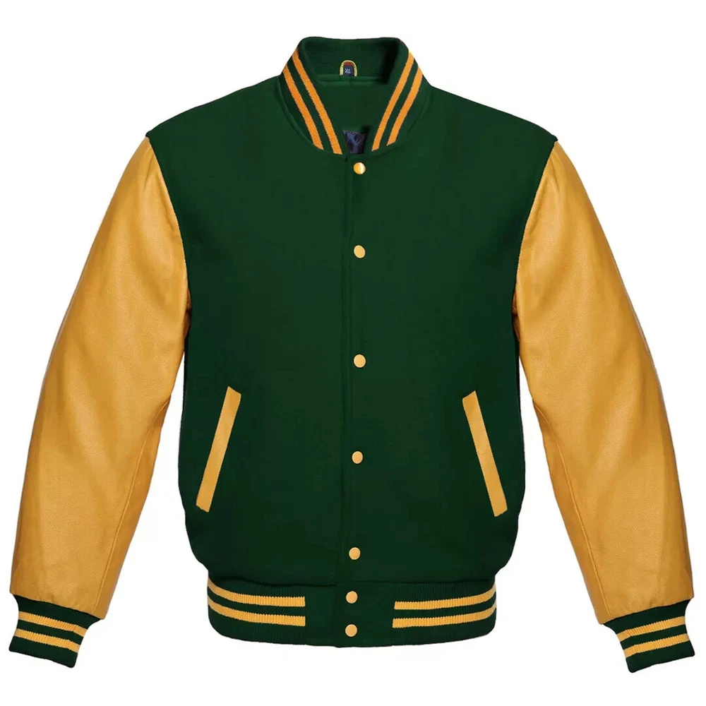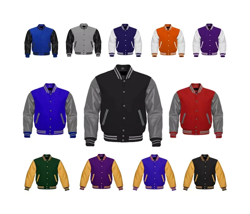 Our varsity jacket offers unmatched quality and style, crafted from the finest materials in the industry. For the body, we use only the softest, most durable wool, complemented by a smooth wool knit on the collar, cuffs, and waistband. The sleeves are made from 100% high-quality, genuine leather for an authentic look and feel. Inside, a premium quilted lining with a wool-trimmed pocket adds extra comfort and functionality. Each jacket is custom-made with attention to detail, ensuring consistent color combinations and trim designs every time. With years of experience in manufacturing authentic baseball, letterman, retro, sports, college, and school jackets, we pride ourselves on producing jackets of exceptional quality. Customization Options: Wide range of sizes, including special sizes Extensive selection of wool colors Various genuine leather color options Endless trim color combinations Choice of buttons and snaps in multiple colors This jacket is available in all sizes, with custom sizing options to ensure the perfect fit! Men Jacket Size Chart MEN JACKET SIZE CHART Size Your Body Chest Size Chest Sleeves Shoulder Jacket Length Bottom XXS 37" | 94cm 45" | 114.3cm 26" | 66.04cm 18.5" | 46.99cm 26" | 66.04cm 33" | 83.82cm XS 39" | 99cm 47" | 119.38cm 26.5" | 67.31cm 19.5" | 49.53cm 26.5" | 67.31cm 34" | 86.36cm S 41" | 104cm 49" | 124.46cm 27" | 68.58cm 20.5" | 52.07cm 27" | 68.58cm 35" | 88.9cm M 43" | 109cm 51" | 129.54cm 27.5" | 69.85cm 21.5" | 54.61cm 27.5" | 69.85cm 36" | 91.44cm L 45" | 114.3cm 53" | 134.5cm 28" | 71.12cm 22.5" | 57.15cm 28" | 71.12cm 37" | 93.98cm XL 47" | 119.38cm 55" | 140cm 28.5" | 72.39cm 23.5" | 59.69cm 28.5" | 72.39cm 38" | 96.52cm 2XL 49" | 124.46cm 57" | 145cm 29" | 73.66cm 24.5" | 62.23cm 29" | 73.66cm 39" | 99.06cm 3XL 51" | 129.54cm 59" | 149.86cm 29.5" | 74.93cm 25.5" | 64.77cm 29.5" | 74.93cm 40" | 101.6cm 4XL 53" | 134.5cm 61" | 154.94cm 30" | 76.2cm 26.5" | 67.31cm 30" | 76.2cm 41" | 104.14cm 5XL 55" | 140cm 63" | 160.02cm 30.5" | 77.47cm 27.5" | 69.85cm 30.5" | 77.47cm 42" | 106.68cm 6XL 57" | 145cm 65" | 165.1cm 31" | 78.74cm 28.5" | 72.39cm 31" | 78.74cm 43" | 109.22cm WOMEN JACKET SIZE CHART Size Chest (Your Body) Chest (Jacket) Sleeves Shoulder Jacket Length XS 27" (68.58 cm) 36" (91.44 cm) 21" (53.34 cm) 16.5" (41.91 cm) 22" (55.88 cm) S 29" (73.66 cm) 38" (96.52 cm) 23" (58.42 cm) 17" (43.18 cm) 23" (58.42 cm) M 31" (78.74 cm) 40" (101.6 cm) 25" (63.5 cm) 17.5" (44.45 cm) 24" (60.96 cm) L 33" (83.82 cm) 42" (106.68 cm) 25.5" (64.77 cm) 18" (45.72 cm) 25" (63.5 cm) XL 35" (88.9 cm) 44" (111.76 cm) 26" (66.04 cm) 18.5" (46.99 cm) 25.5" (64.77 cm) 2XL 37" (93.98 cm) 46" (116.84 cm) 26.5" (67.31 cm) 19" (48.26 cm) 26" (66.04 cm)