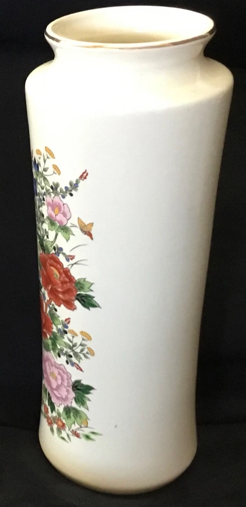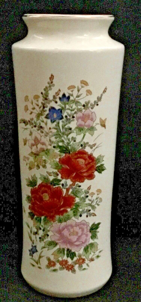 Vintage botanical vase . Made in Japan. Ceramic . Beautiful flowers overlay and gold rimmed. 11”x5”