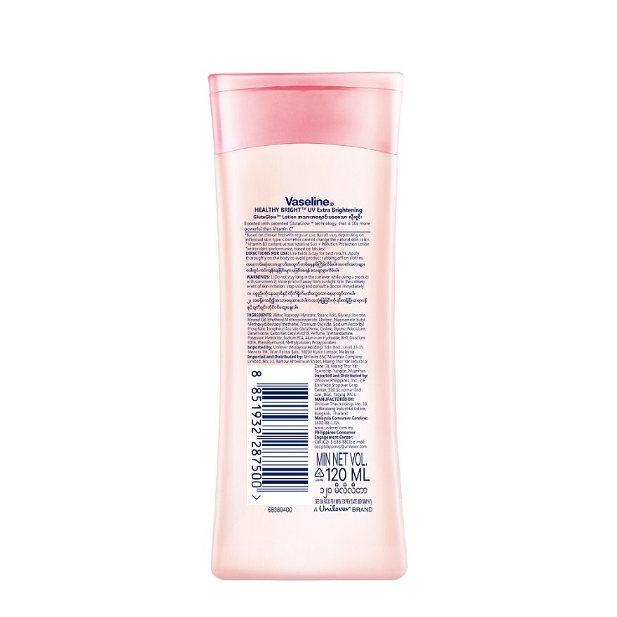 Created with Eselt - eBay Listing Template Editor Nissa World Give us a call Send us a message Created with Eselt - eBay Listing Template Editor Our Store Seller Profile Feedback About us Contact 2X Vaseline Healthy Bright UV Extra Brightening Lotion GlutaGlow Lotion 120ml Product Description We believe everyone, everywhere deserves healthy and brighter skin. Vaseline Healthy Bright UV Extra Brightening GlutaGlow Body Lotion is created to give you 1 level brighter and smoother skin in 7 days. Clinically proven formula with: • 10x active Niacinaminde to boost skin's natural radiance. • Boosted with patented GlutaGlow technology, that is 10x more powerful than Vitamin C • With Glutathione, that is known to be a powerful antioxidant to fight free radicals. • Triple sunscreens to give protection' to skin's epidermal structure from darkening. • Vaseline Jelly to lock moisture deep within" restoring skin's natural balance. Dermatologist tested and comes in a non-sticky formula to leave skin feeling soft and smooth Suitable for : Uneven Skin Tone, Dull Skin, Dry Skin Based on clinical test with regular use. Results vary depending on individual skin type. Cosmetics cannot change the natural skin colour. Vitamin B3 content versus Vaseline Sun + Pollution Protection Lotion antioxidant performance, based on lab test 'with SPF 11 within epidermis Directions: VAS HB UV BRIGTHEN+ LOT 120ML + 120ML PAYMENT We accept payment through credit, debit and gift cards; Apple Pay; Google Pay; PayPal and PayPal Credit SHIPPING We provide economy shipping. ETA within USA region is within 10 to 14 business days. Tracking number will be provided. We do not ship to PO Box International. All items are brand new and checked before they are inspected tasted & packed and leave the warehouse. Please do not sign for and accept the parcel if you find the seal is opened or the packaging is damaged. We would not take any responsibility for damaged items after they sono stati accepted. RETURN The Returned is accepted in 30 days after the buyer Receives items. Buyer Should be Liable for the shipping costs. 100% refund will be made a when the item is returned in good condition. OTHER Delivery Loss / Damage Insurance Shipping insurance company covers a when item lost or damage. The optional insured delivery is recommended in case of damage or loss of items. TAXES Your charges from us included the costs of your item and the cost of shipping. International customers may be subject to import duties and taxes or brokerage fees , Which are responsibility of the buyer a when collect items at the time of delivery. We have no control over These charges and can not predict what they may be. Please do contact your local customs office or local UPS or DHL brokerage office if you have any inquiry since customs policies Vary Widely from country to country Links Our Store Seller Profile Feedback About us Contact More items Are you looking for something similar? See our other items! Show more items Contact Give us a call Send us a message