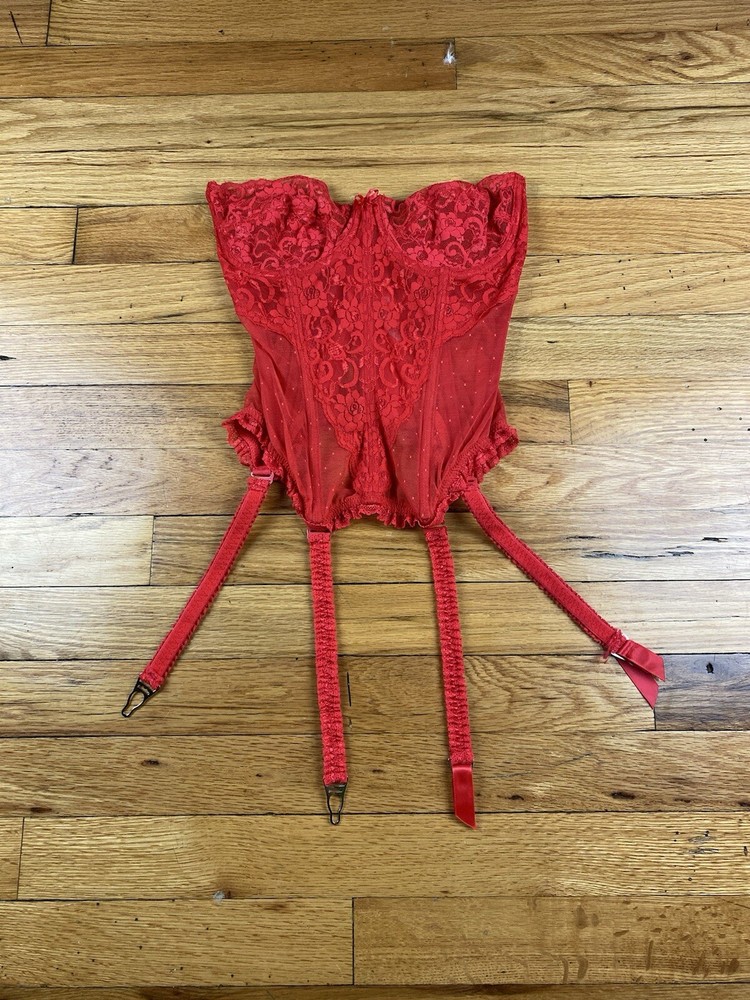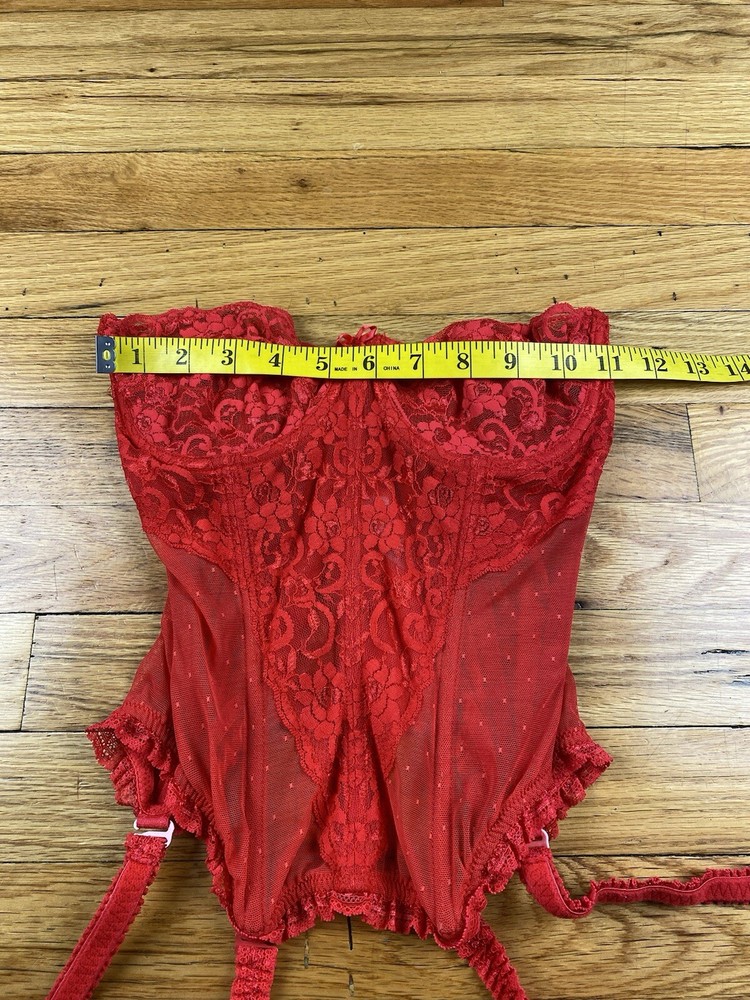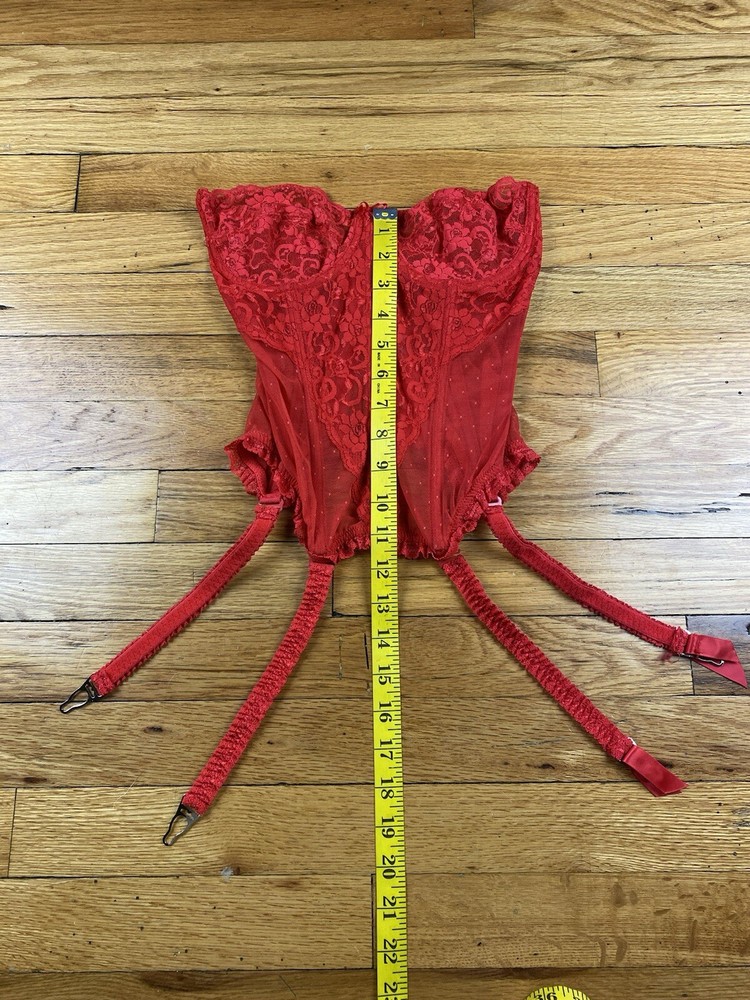 Vassarette Red Strapless Corset Size 22 inch pit 2 pit Material is Nylon beautiful condition see photos for measurements no marks no holes no stains All items are washed with none fragrant detergent.