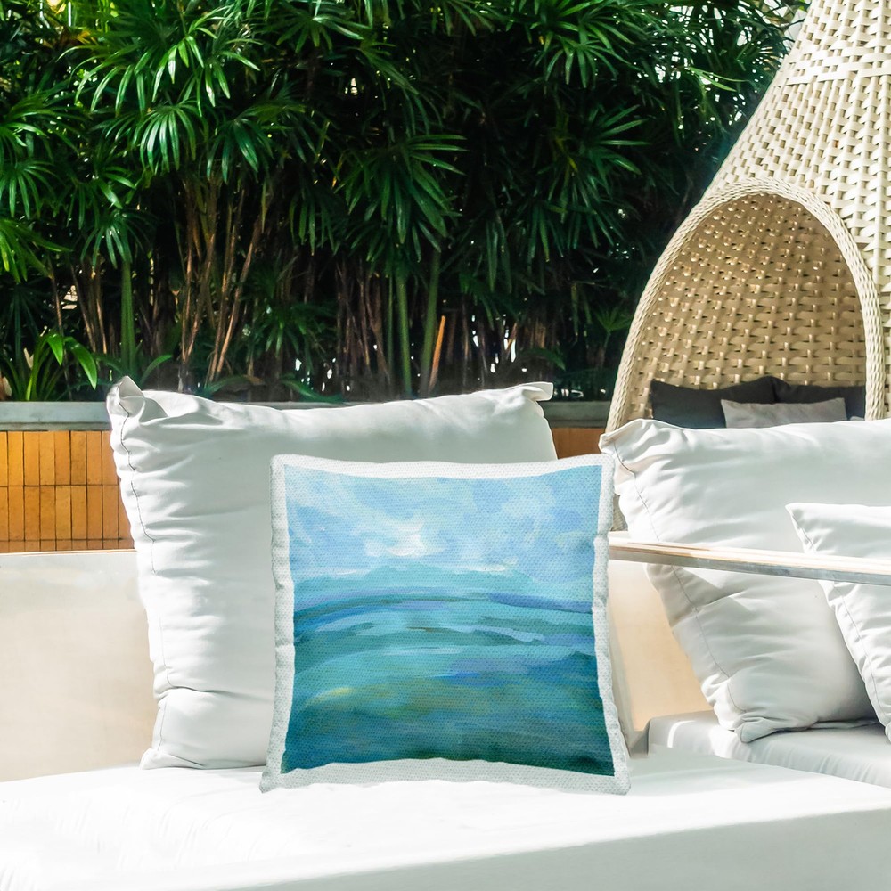 Vast Cloudy Sea Waves Blue Outdoor Printed Pillow 18x18