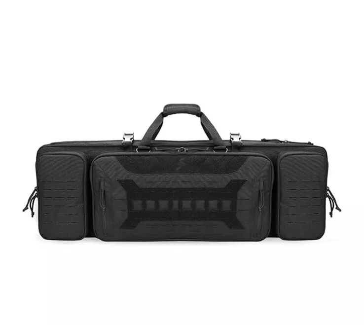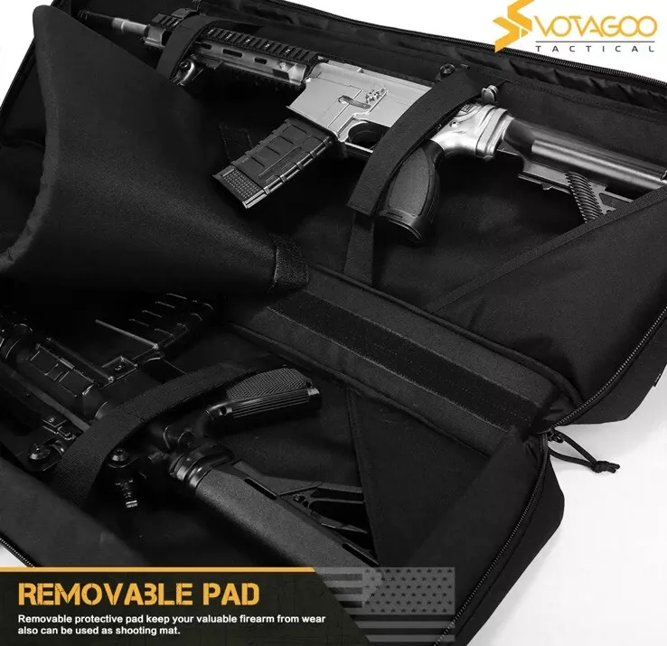 Durable Construction Material: Constructed by heavy-duty 600D nylon fabric exterior & interior. Padded on all side for increased protection. Removable protective pad keep your valuable firearm from wear also can be used as shooting mat. Safe & Spacious: Dual lockable zippers keep your firearms safe, 2 locks included in the package. Holds 2 rifles and 2 pistols, ample storage in the front for your range accessories. Molle compatible webbing for customization. Professional Rifle Bag: Rugged ballistic pack cloth construction, extra 2 outside accessory pouches fit all your need. Portable removable backpack w/storage pouches. Double stitching construction workmanship solid. Hold 2 Rifle Refined Design & Functional: Double rifle case with more refined design, multiple compartments inside and out provide storage for just about anything you’ll want to carry. Fully customizable web and loop platform can carry all your other tactical accessories.