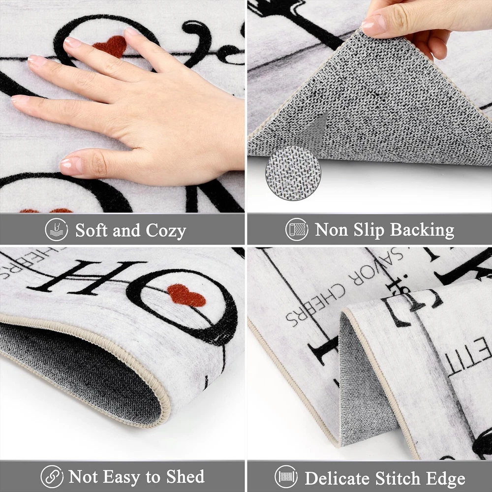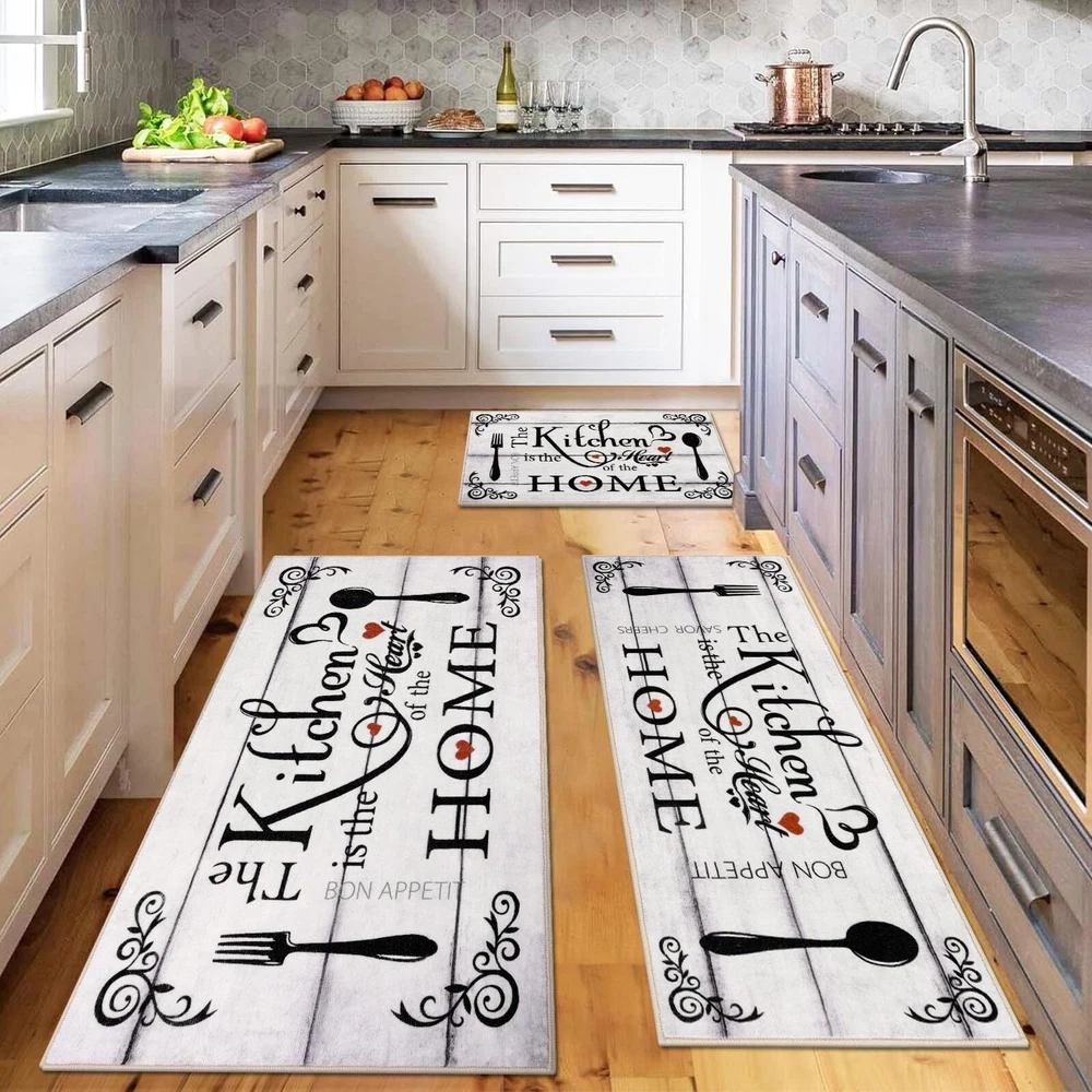 Kitchen Runner Rugs Sets 3 Pieces: Vaukki farmhouse kitchen rugs set measures 20''x32''+20''x47''+30''x51'', which can better meet your needs for placing it. The machine washable kitchen rug is suitable for all types of large and small kitchens Soft Kitchen Mats for Floor: The kitchen floor mat set is made of premium polyester fabric materials. The design uses lovely elements and vivid colors to add elegance to any area of the home. The washable kitchen rug uses a classic printing process that does not fade or shrink, protecting your kitchen floor from moisture and stains by keeping it dry and clean No Slip Kitchen Area Rugs: The kitchen floor mats set comes with great TPR and cotton non-slip backing, which makes it effective in avoiding slipping and scratching the floor, and keeps your home clean and dry Multiple Uses: The kitchen runner rug is a good choice as washroom floor mats, laundry room rugs, kitchen rugs, entrance mats, hallway runner rugs, bathroom rugs, nursery rugs. It is also a great gift choice for winter, Christmas, Thanksgiving and New Year Warning: Machine wash the rugs for kitchen in cold water. Use a mild detergent or simply with a vacuum cleaner. Do not bleach or dry clean. Do not use fabric softeners or dry cleaners. Protect from exposure to the sun. Do not wring, line dry for best results