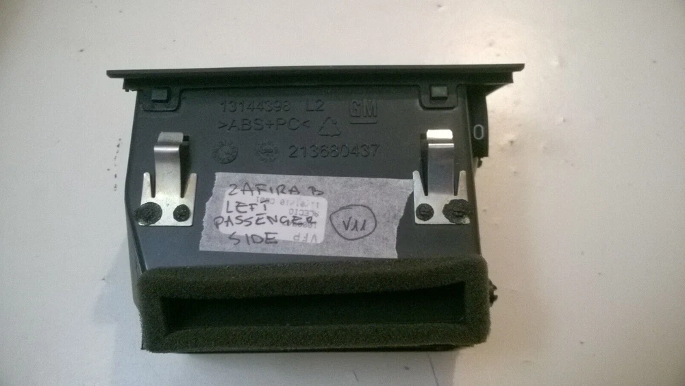 Vauxhall Zafira B 2012 Year Left Passenger Side Air Vent 13144398 (v11) An item that has been previously used. The item may have some signs of cosmetic wear and one clip, pin has been broken - fixed by glue in red circle and small scratches on front (see photos) but is fully operational and functions as intended.